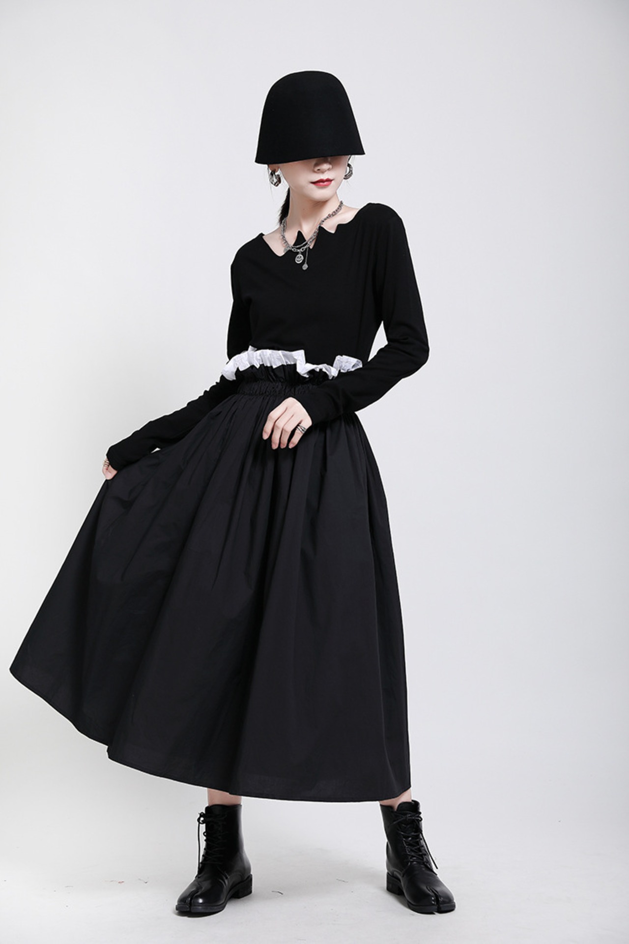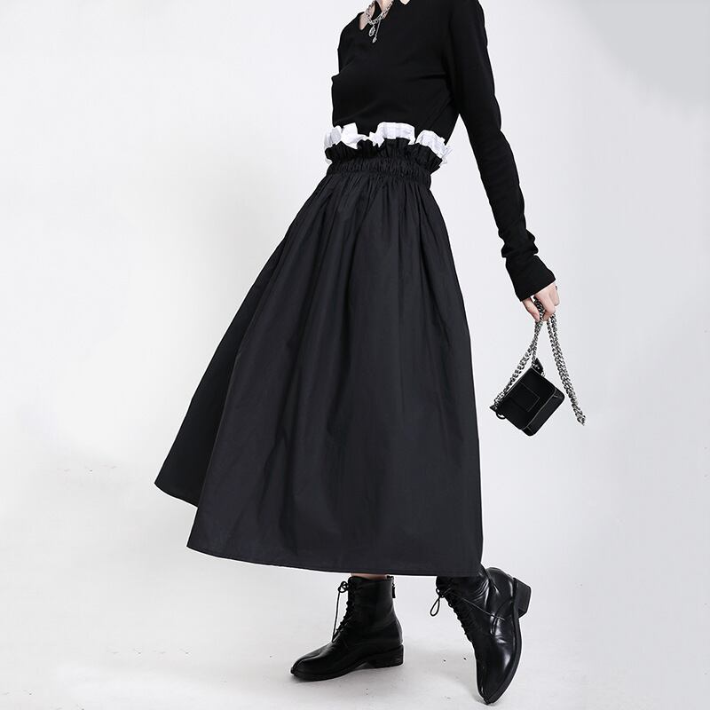 スプリングダークストレッチウェストスカート ダブルAラインFlowerデザイン エラスティック 伸縮 春物 フラワーデザイン ステッチ ウエスト GroundMODE329662582307 | pleglad Ground