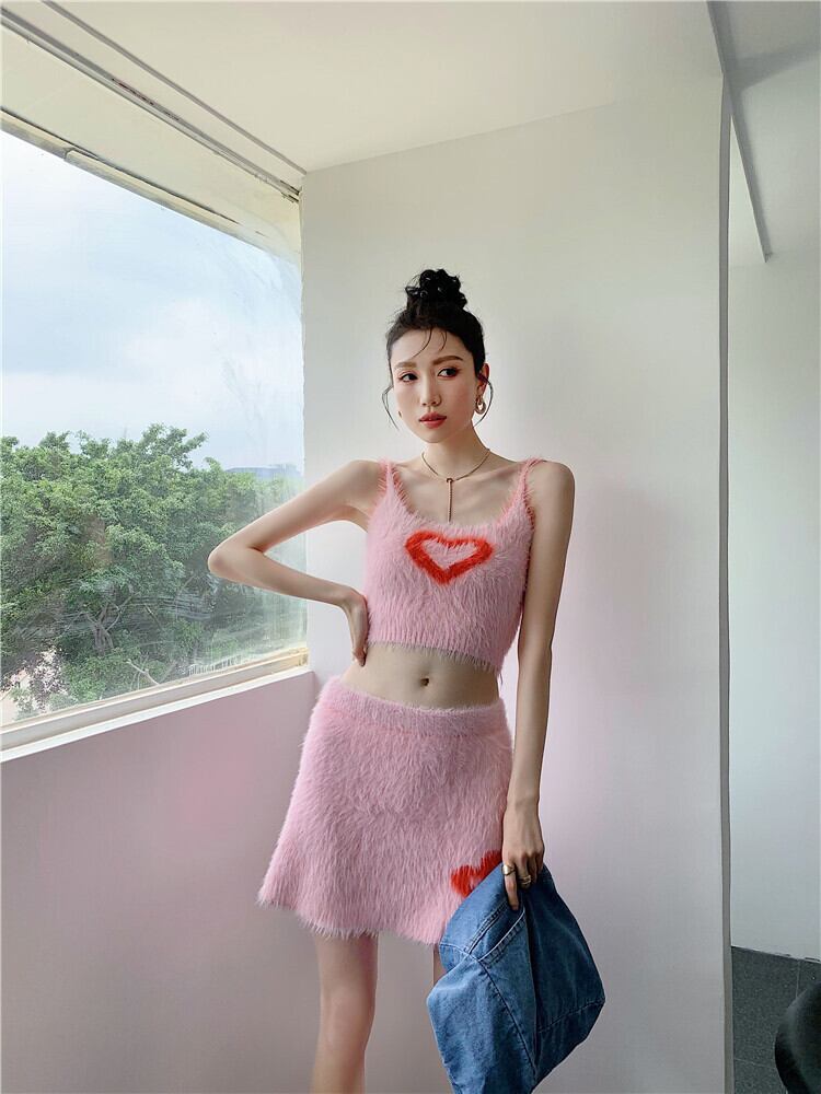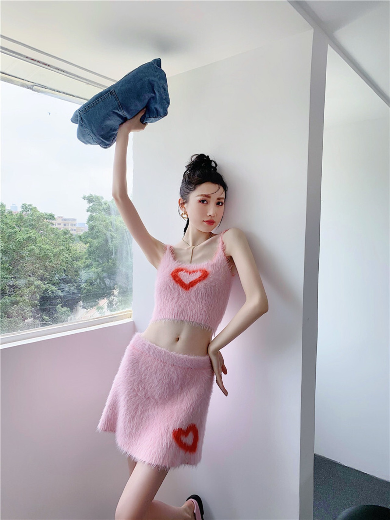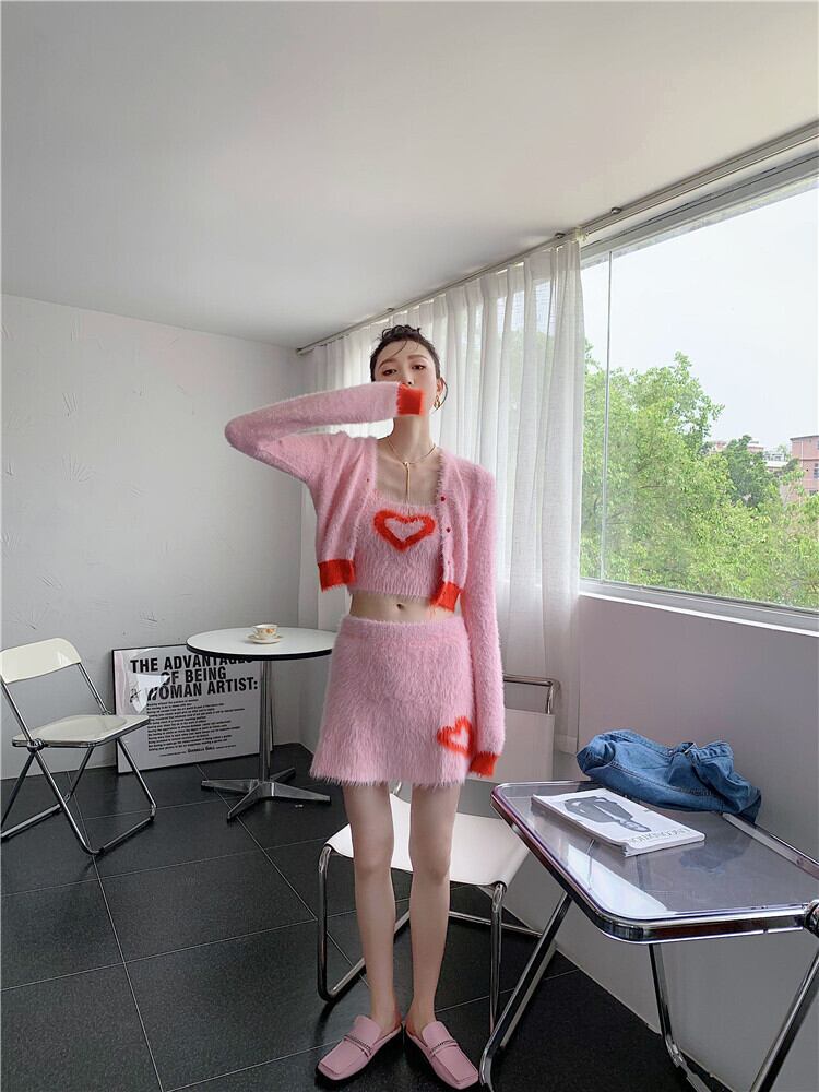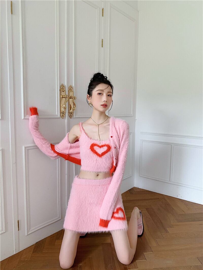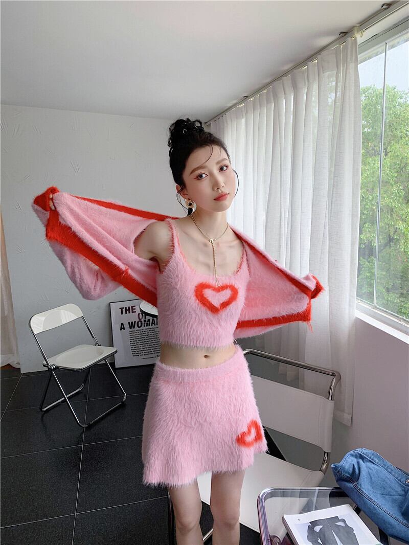 色:ピンクのジャケット,ピンクキャミソール,ピンクショートスカート