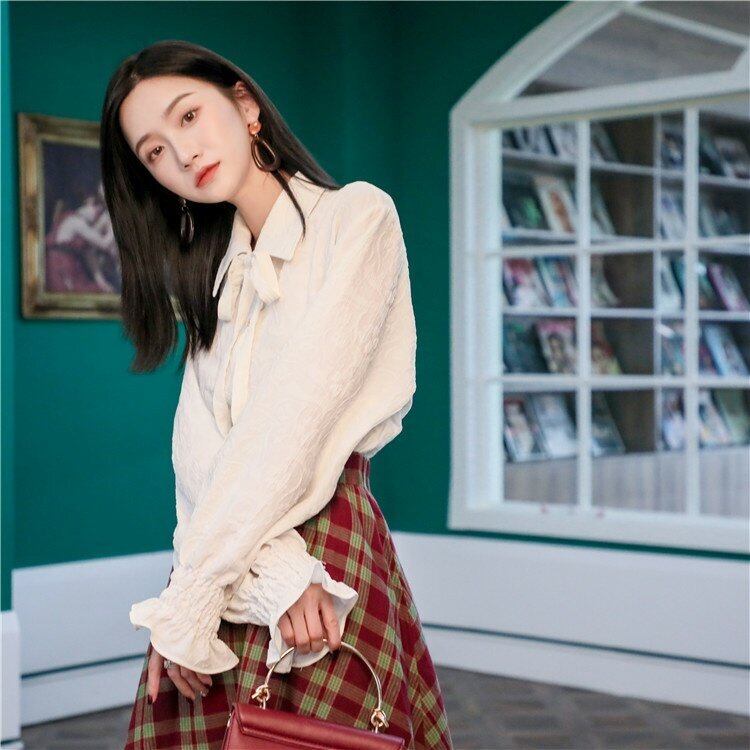 Flowerデザイン シャツ レディーススタンダードスプリング秋物ルーズスリーブ ランタンスリーブ レトロ 春物 オータム フラワーデザイン GroundMODE473020627307 | pleglad Ground