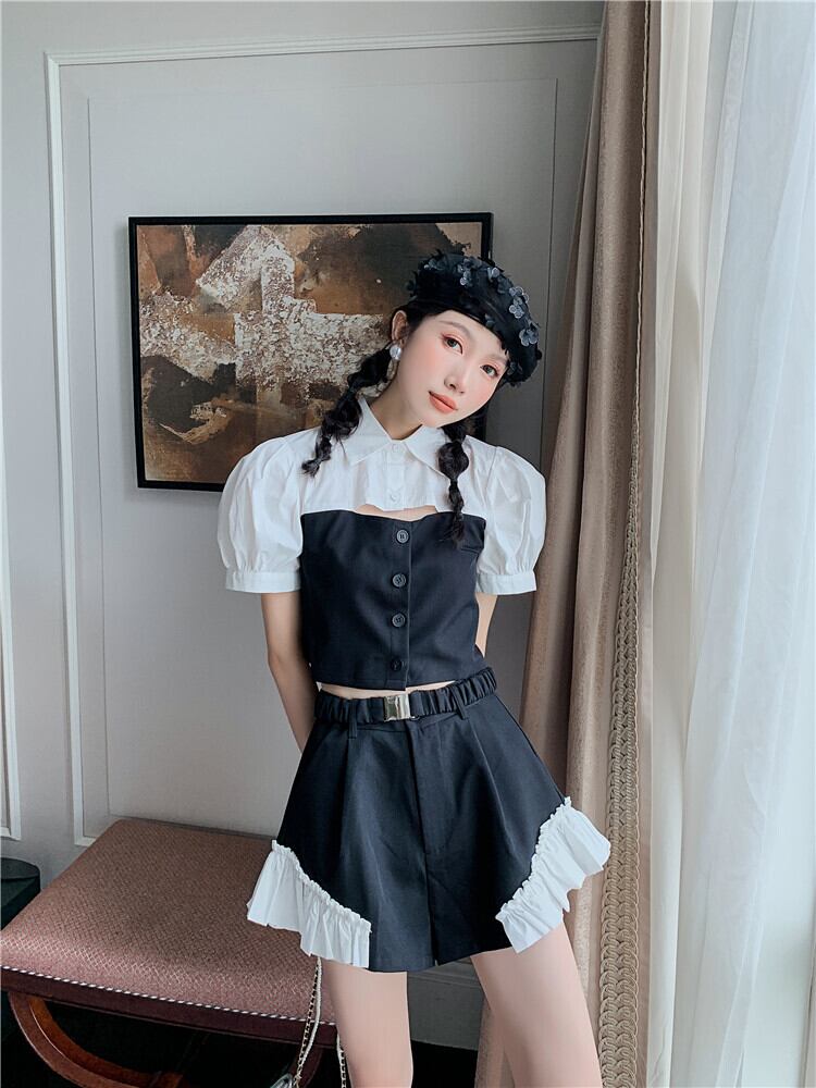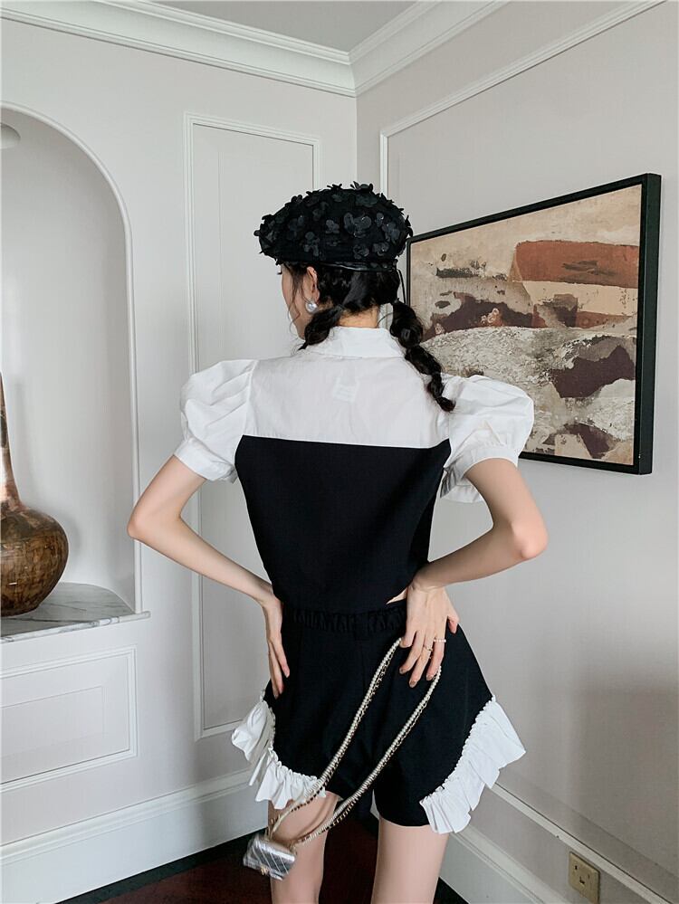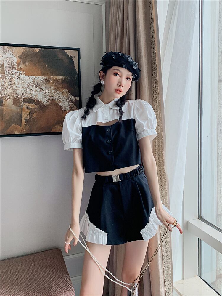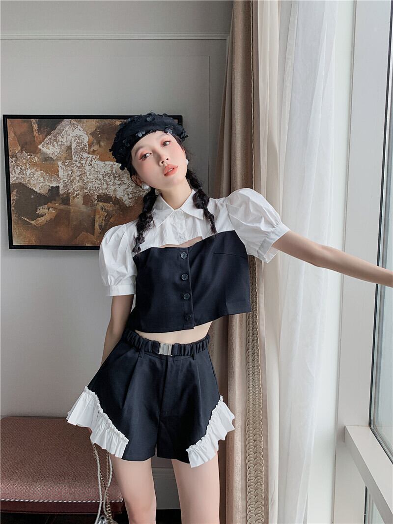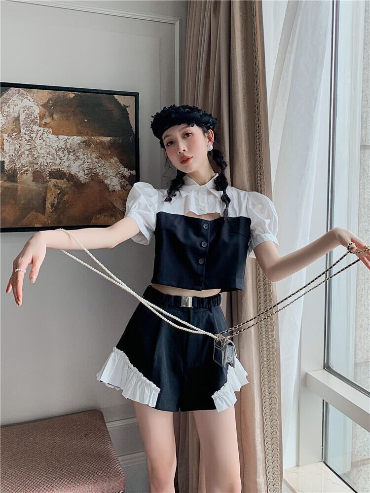 色:カラーブロックトップ,カラーブロックショーツ,ツーピースカラーマッチング