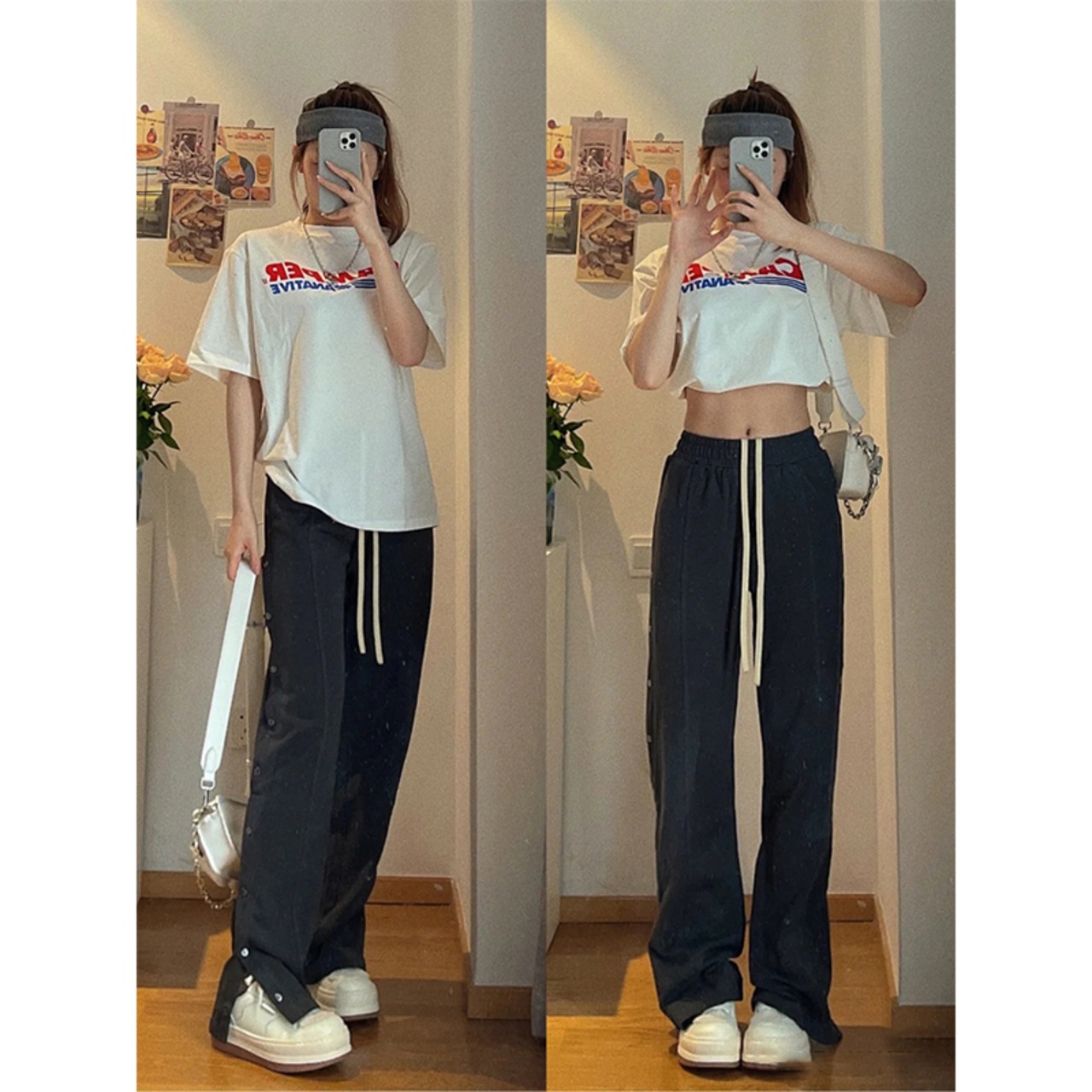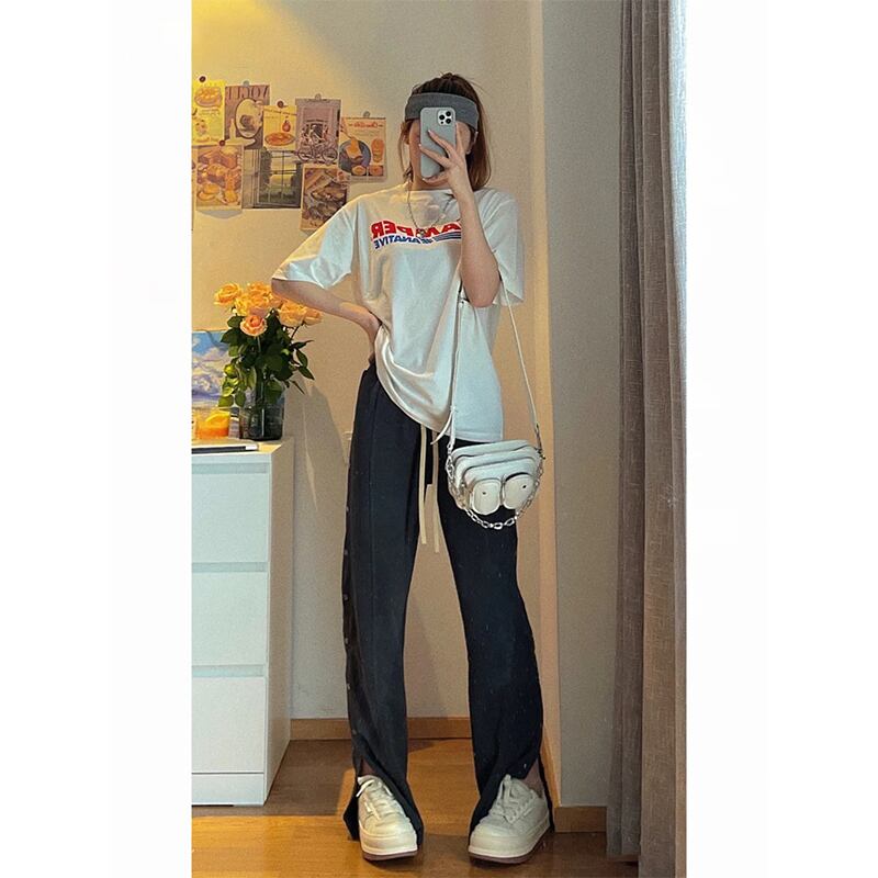 色:ボタン付きカジュアルパンツ
