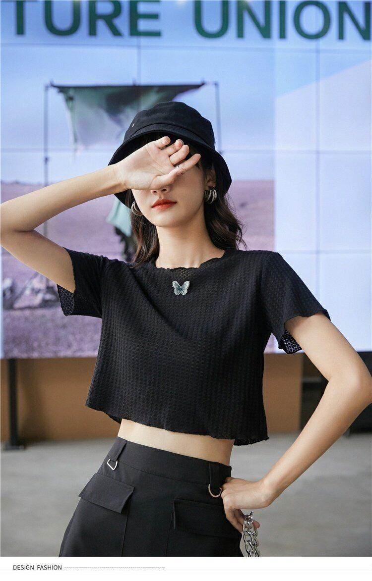Flowerデザイン スプリング秋物Butterflyデザイン 刺繍ラウンドネックブラウス 薄手Tシャツレディース 春物 オータム Oネック フラワーデザイン GroundMODE474310126000 | pleglad Ground
