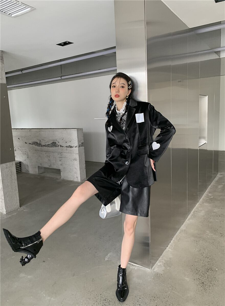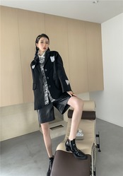 色:黒いジャケット,スタンドカラー長袖シャツ