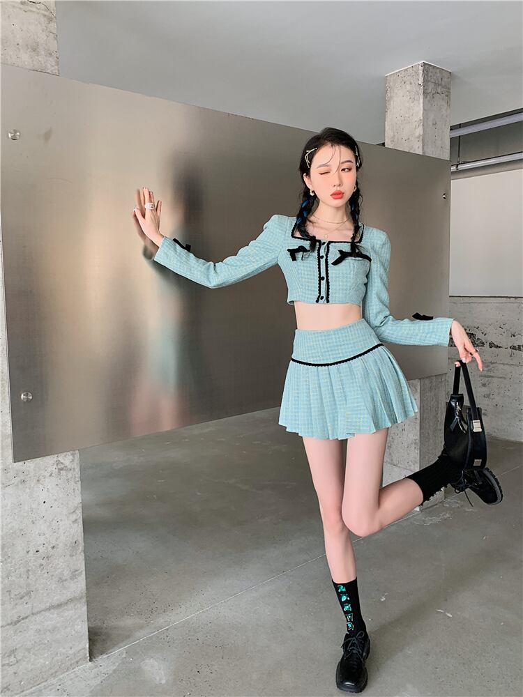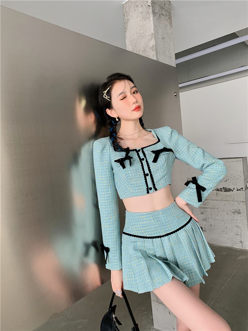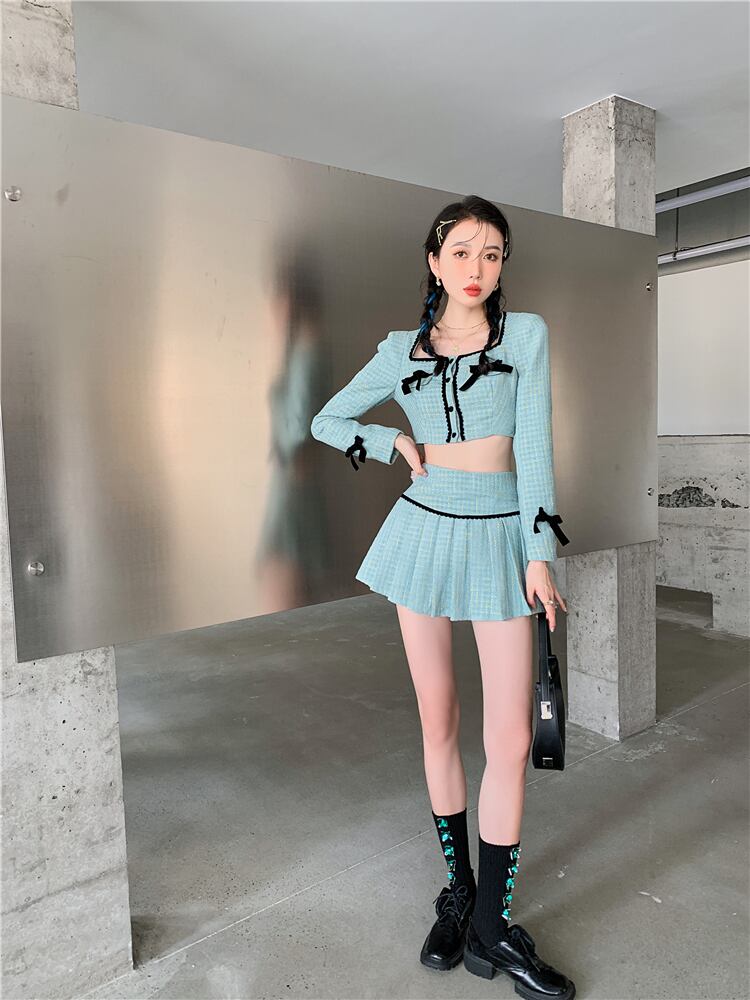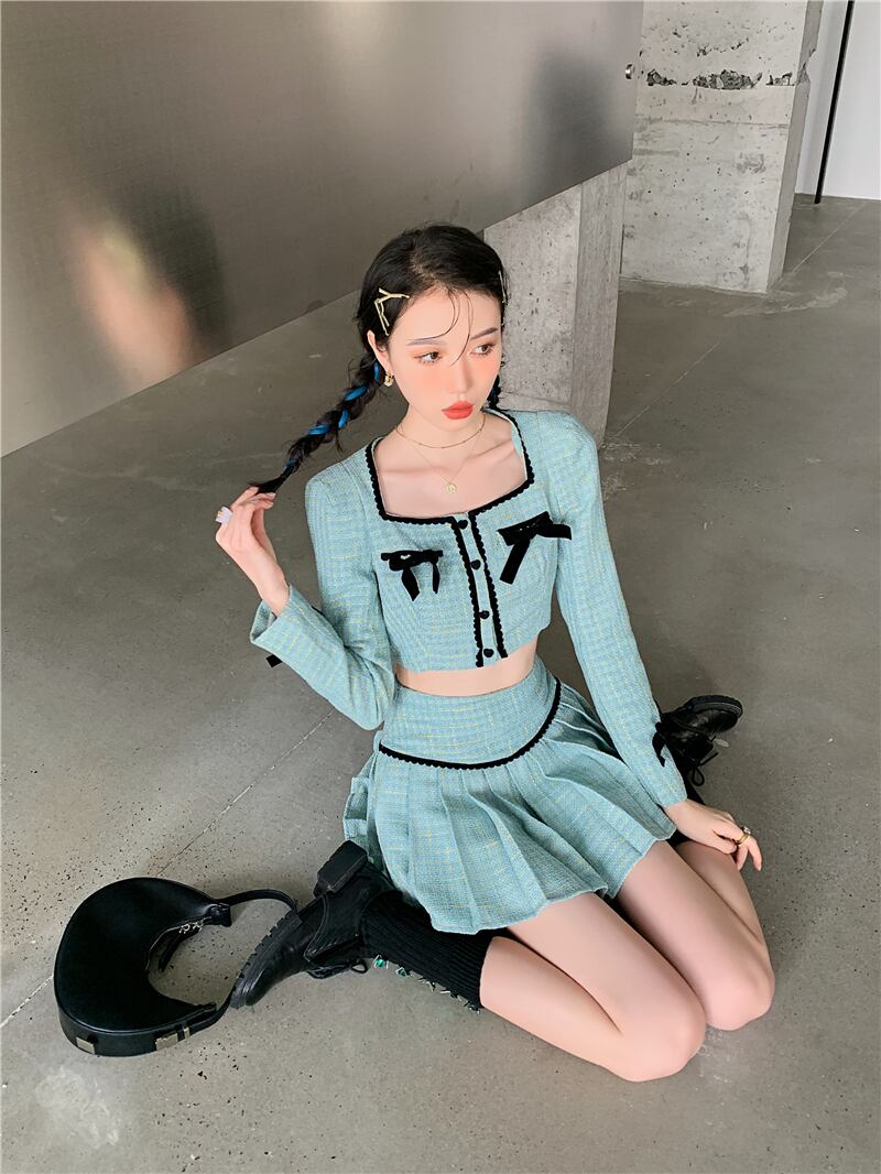 色:グリーントップ,グリーンプリーツスカート