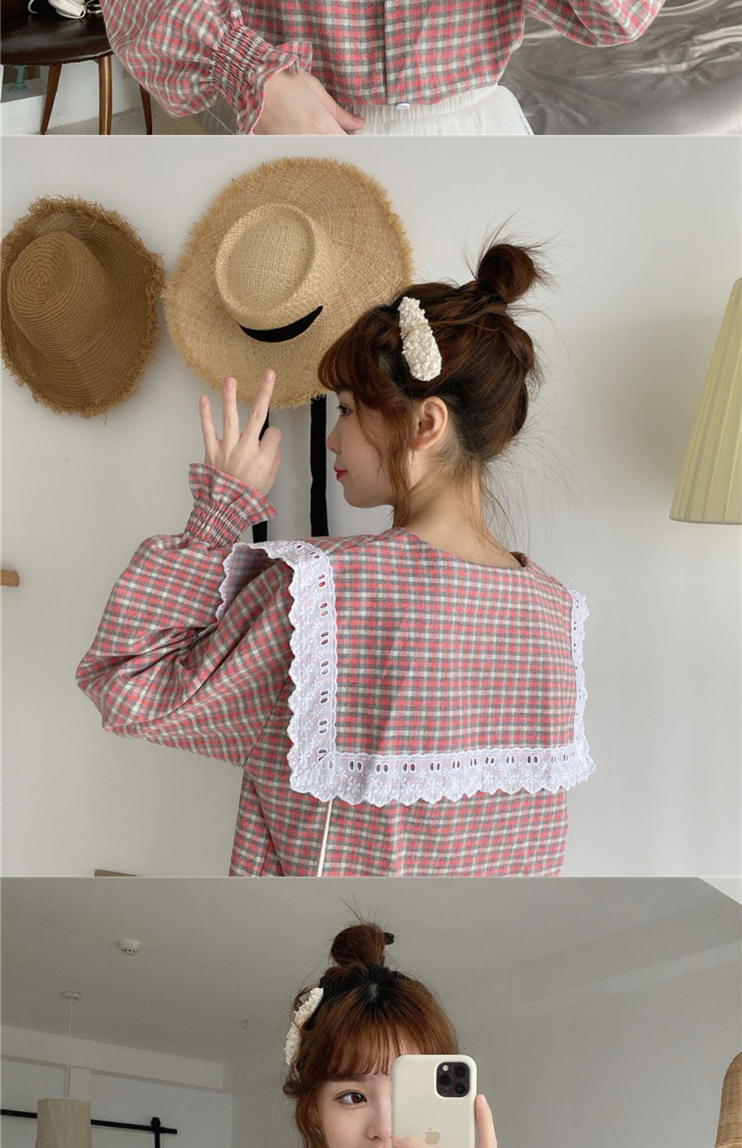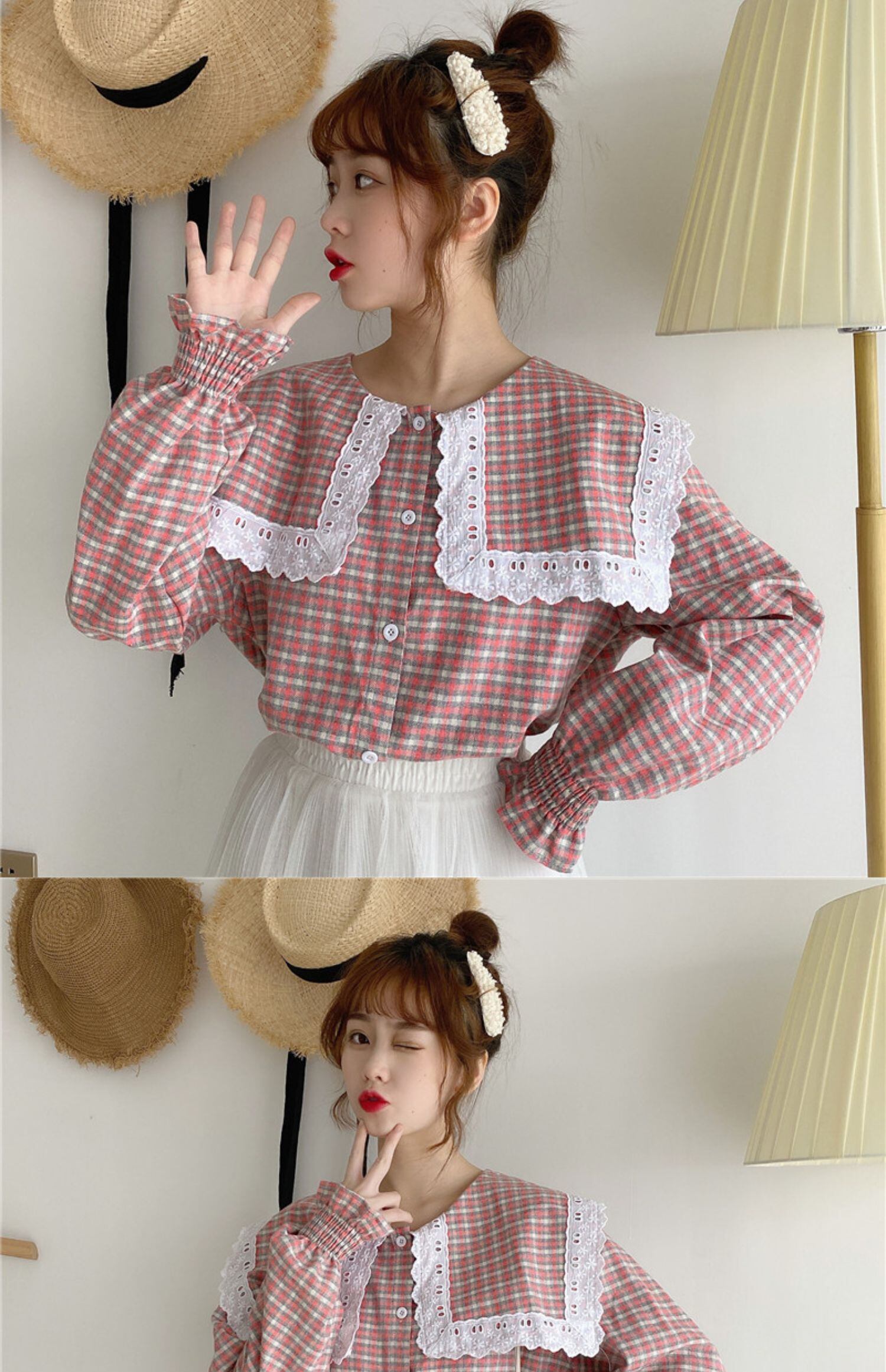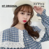 格子柄スリーブシャツ スタンダードネイビースタイル薄手カラースプリング秋物 ロング ピンク レトロ 春物 オータム 長袖 GroundMODE497988146454 | pleglad Ground