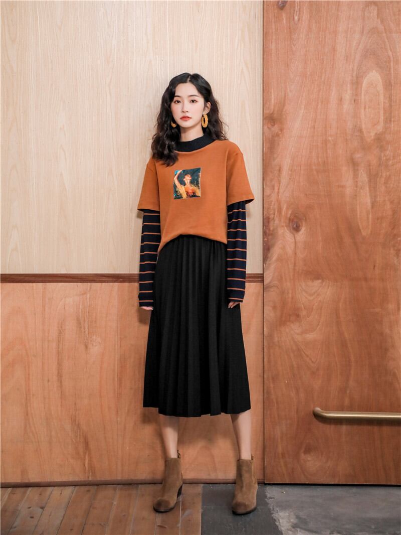 ストライプスリーブセーター レディースルーズ韓国ファッション秋物ウィンターNEWラウンドネックトップス オータム 冬物 Oネック ステッチ スタイル GroundMODE265157329880 | pleglad Ground