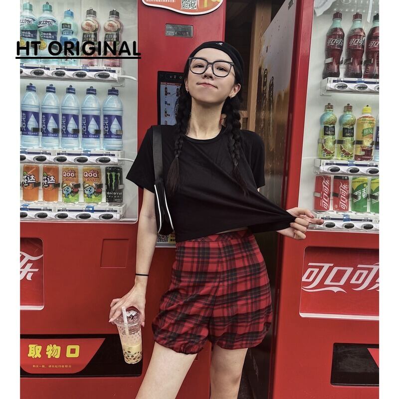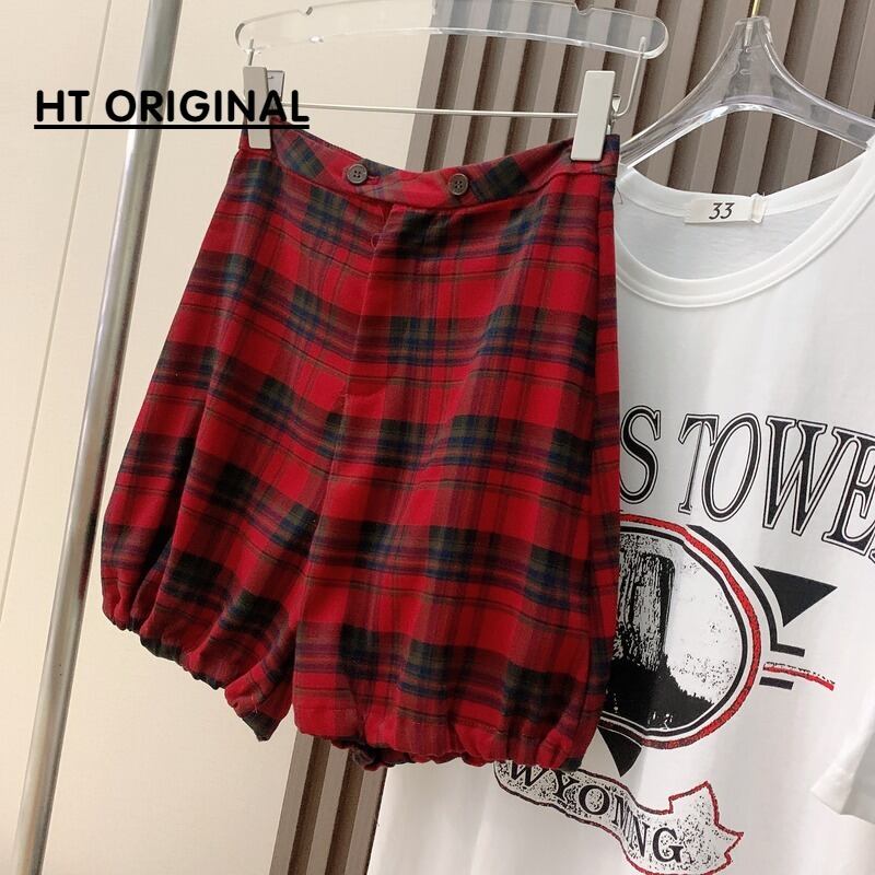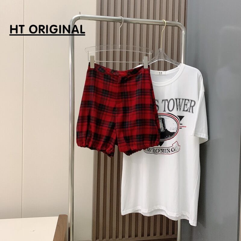 格子柄Flowerデザイン パンツ カジュアルショーツ レディーススプリング夏服ハイウェストウェストスタンダード レトロ 春物 夏物 フラワーデザイン ウエスト GroundMODE415401853839 | pleglad Ground