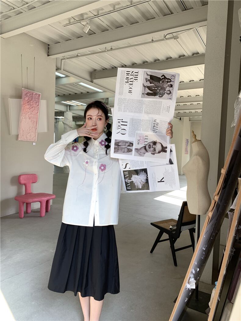 ホワイトシャツ レディース夏服韓国ファッションNEWスタイルFlowerデザイン トップス ロング 夏物 フラワーデザイン 長袖 GroundMODE248225409124 | pleglad Ground