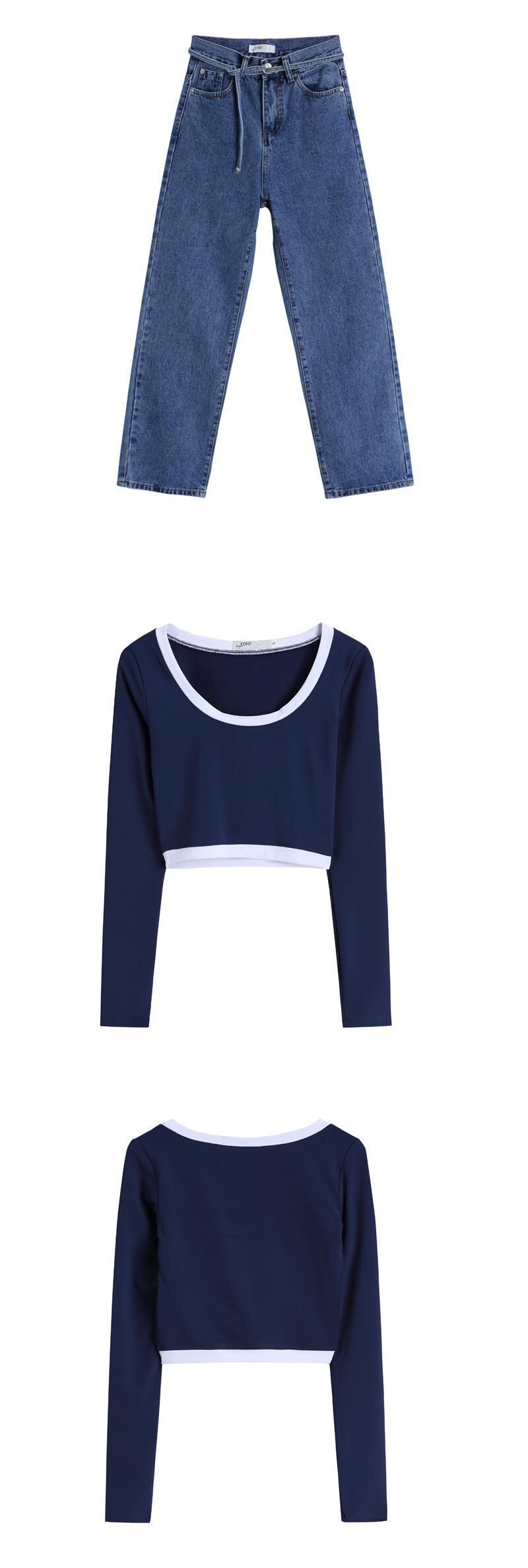 スプリング秋物クロップトップ トップス レディースハイウェストゆったりTシャツパンツ ロング 春物 オータム 長袖 ウエスト GroundMODE465746111228 | pleglad Ground