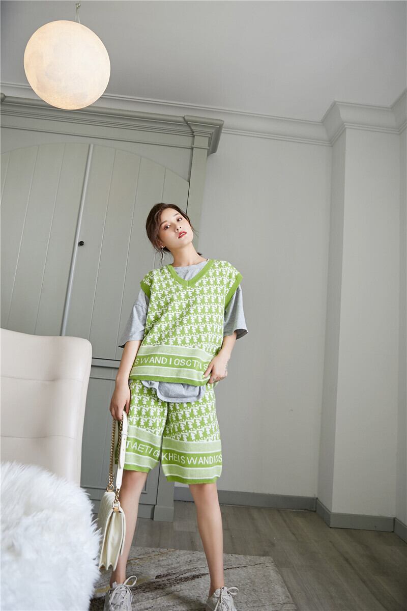 色:グリーンベスト,黒のショートパンツ,グリーンショートパンツ,黒のベスト