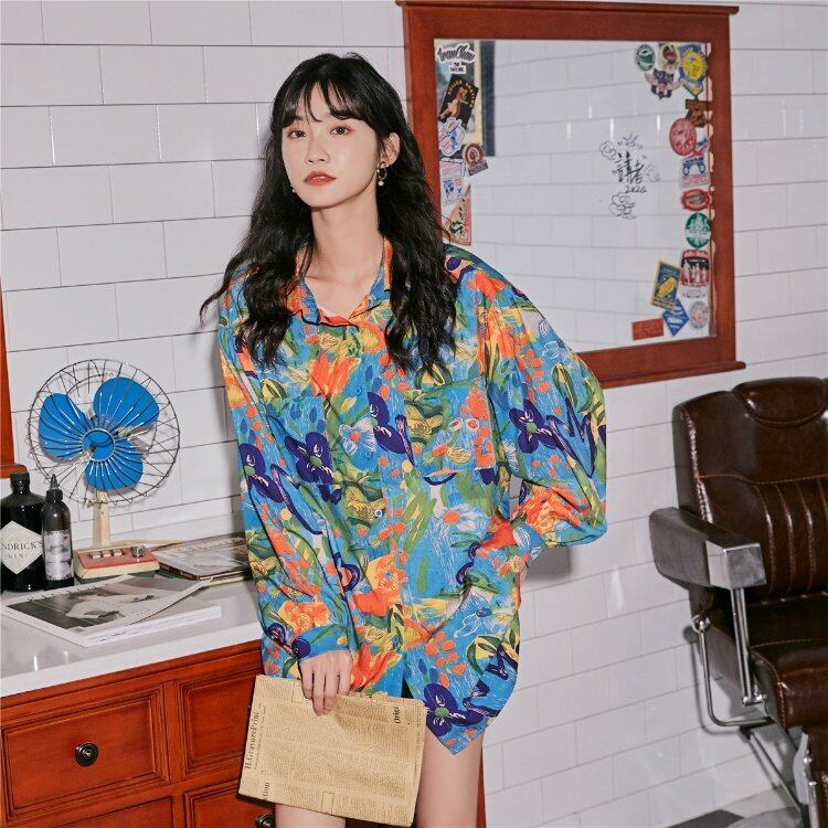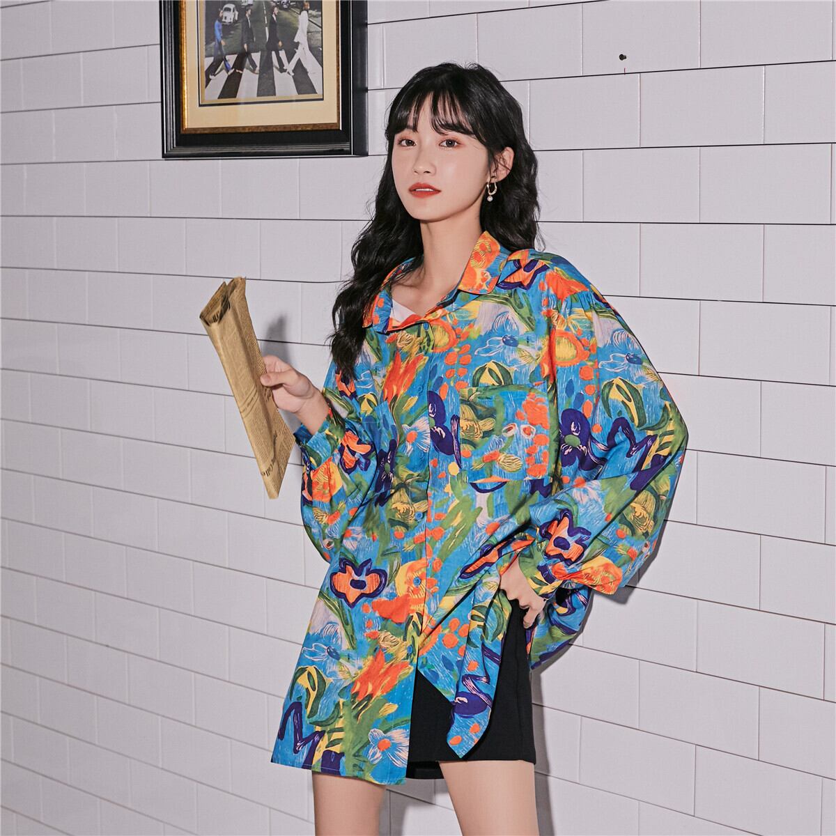 スタンダードフローラルシャツ スタイルルーズトップス Flowerデザイン ロング レトロ 花柄 フラワーデザイン 長袖 GroundMODE229324888215 | pleglad Ground