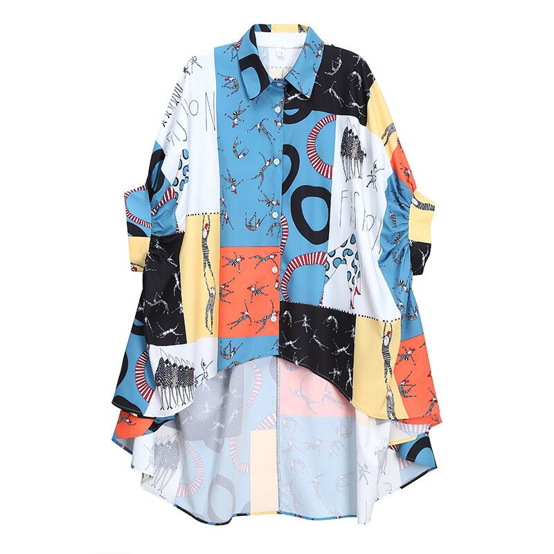 プリント夏服スタイルルーズショートバックロングフローラルシャツ ブラウス 夏物 花柄 ヨーロピアン GroundMODE65271928453