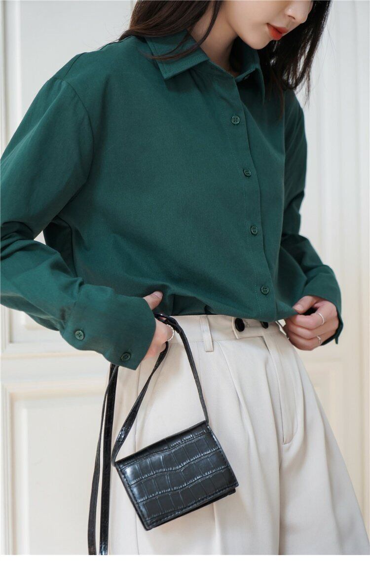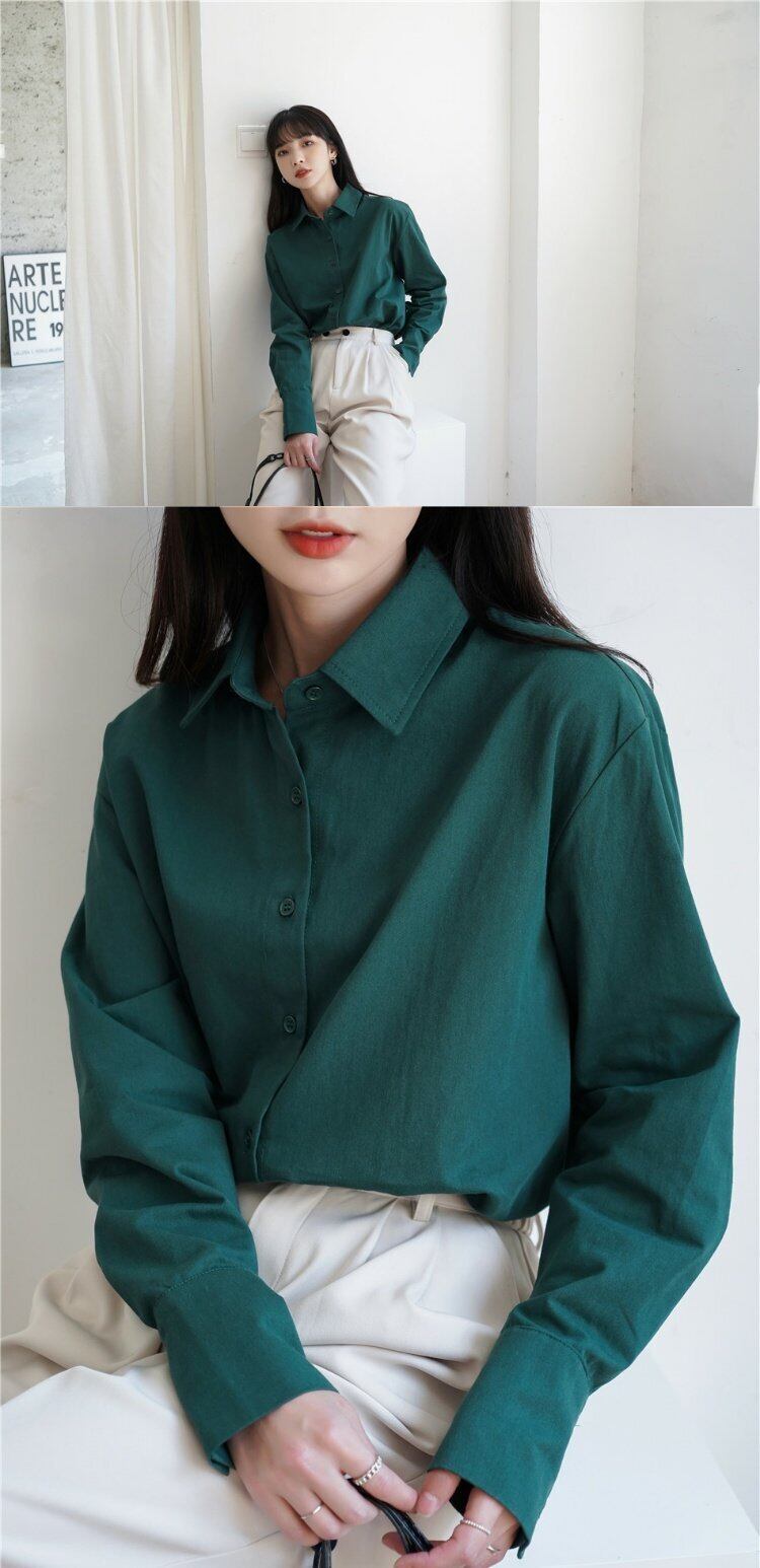 Flowerデザイン グリーンシャツ レディーススプリング秋物カラートップス ロング 春物 オータム フラワーデザイン 長袖 GroundMODE469766265367 | pleglad Ground