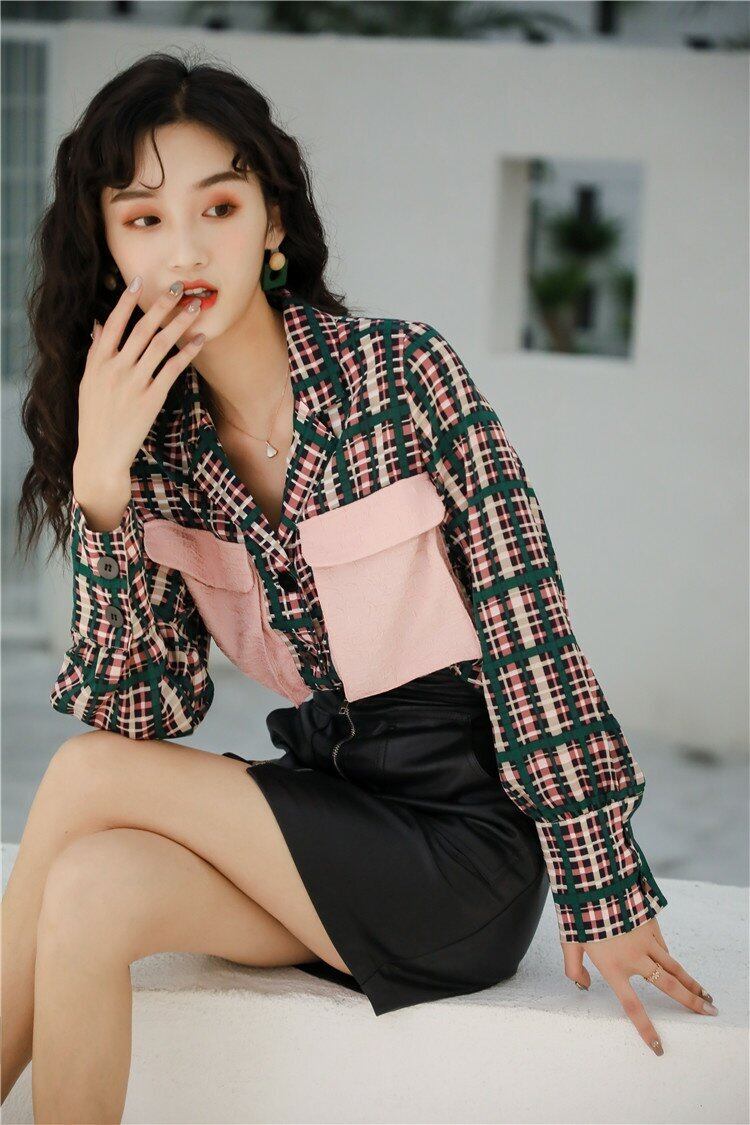 Flowerデザイン スプリング秋物ダークグリーンパウダーポケットシフォンシャツ 長袖スリーブレディース ロング 春物 オータム フラワーデザイン ステッチ GroundMODE477569509891 | pleglad Ground