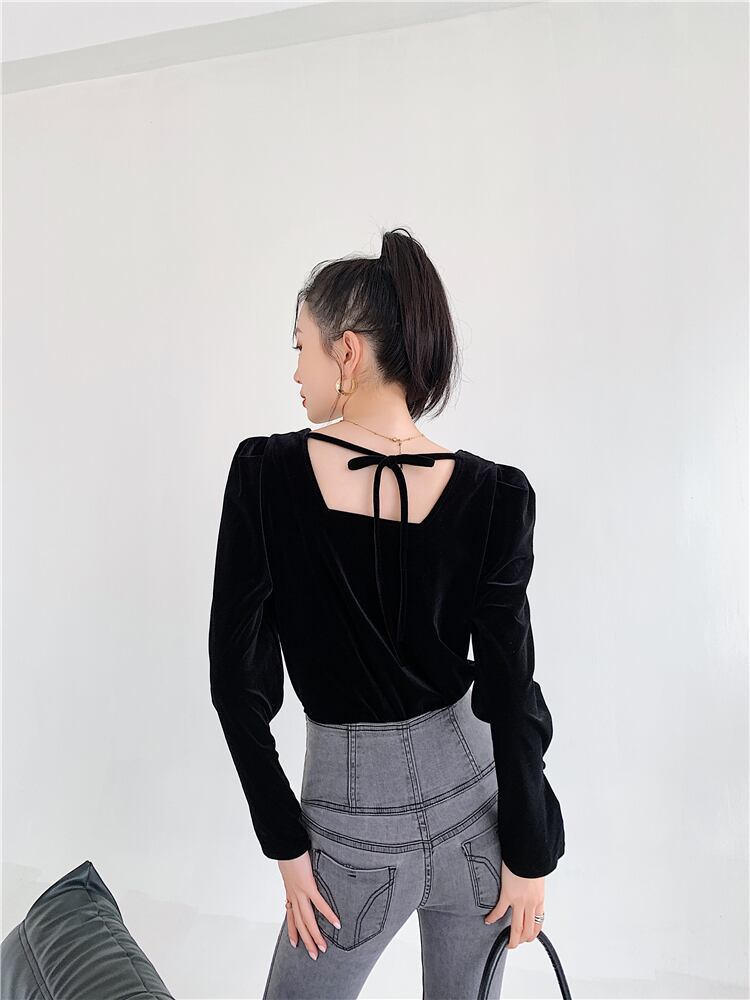 ブラック厚みシャツ レディーススプリングスタンダードスタイルクロップドトップス ロング レトロ レース 春物 レースアップ 長袖 GroundMODE266938433708 | pleglad Ground