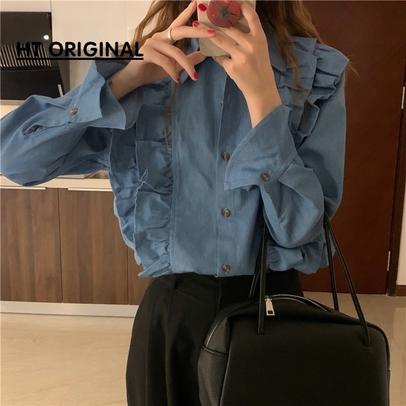 スタンダード韓国ファッションシャツ ジャケット レディーストップス スプリング秋物 ロング レトロ 春物 オータム 長袖 GroundMODE428890895101 | pleglad Ground