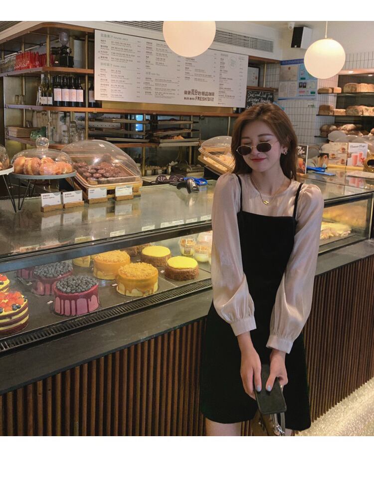 色:ブラックサスペンダースカート,アプリコットボトムスシャツ