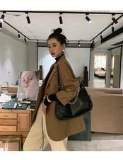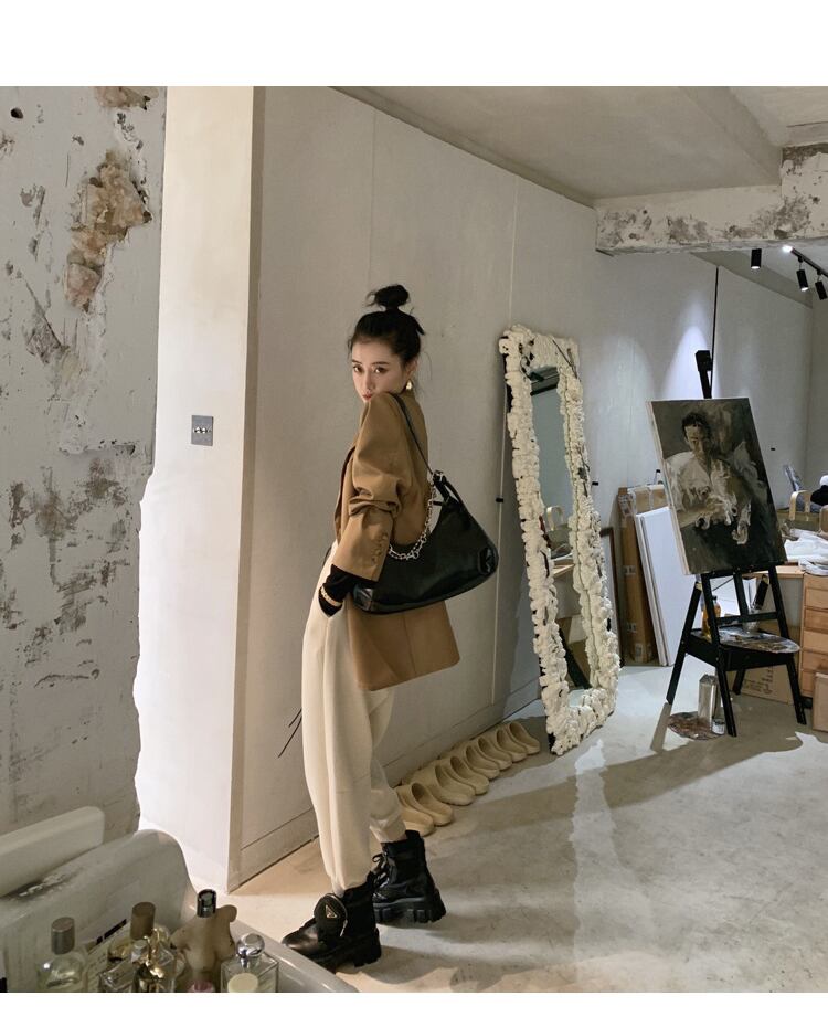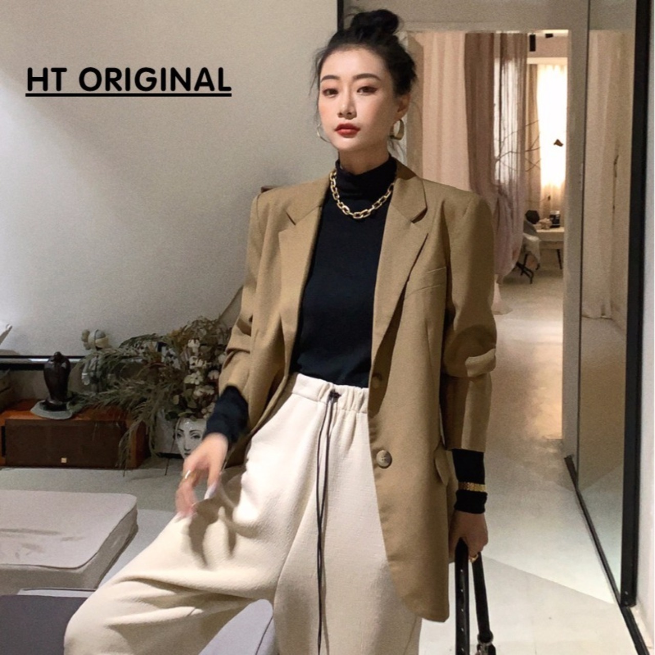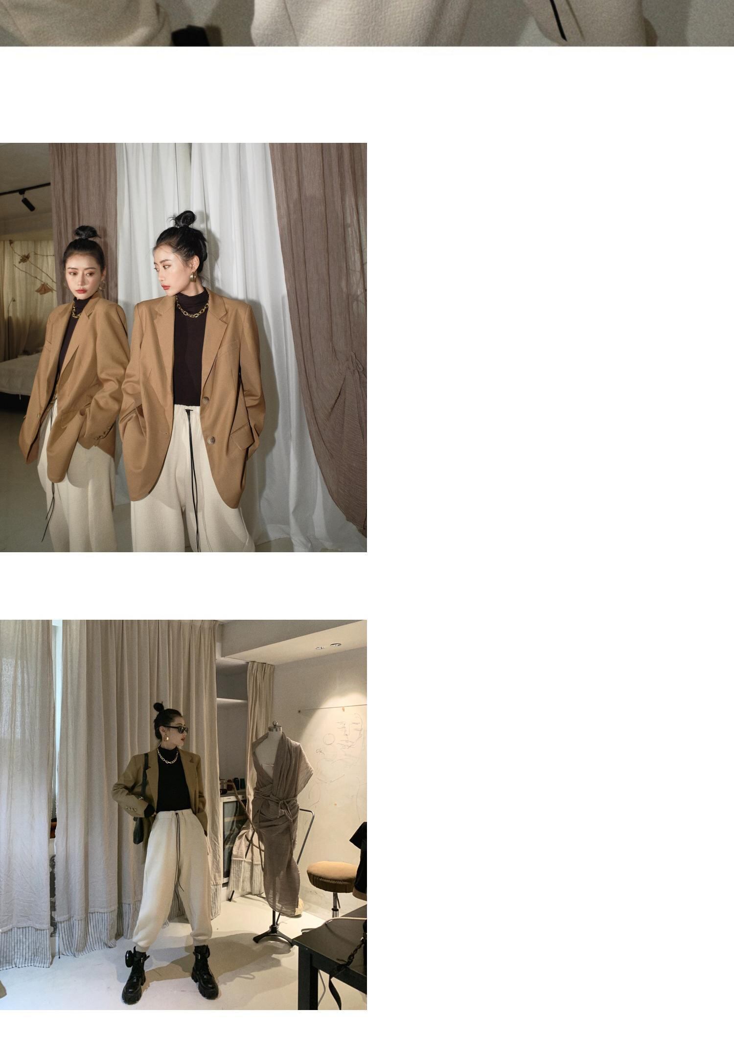 色:カーキブレザー,アプリコットパンツ,黒底シャツ