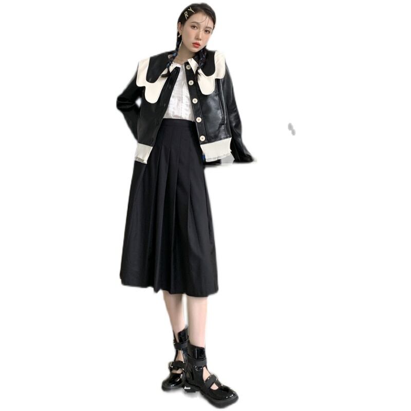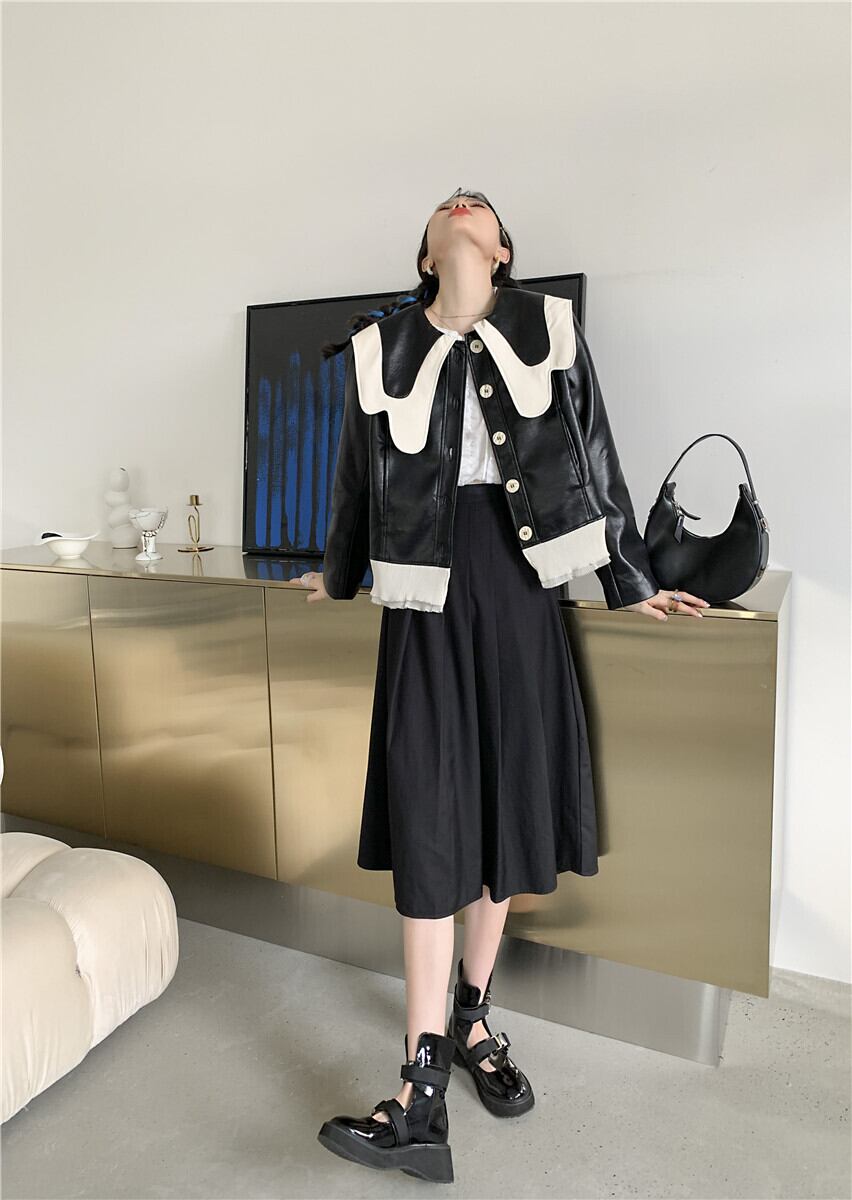秋物スタンダードブラックホワイトFlowerデザイン カラーレザージャケット レトロ 大人ガーリー スウィート キュート カジュアル オータム フラワーデザイン GroundMODE210394876154 | pleglad Ground