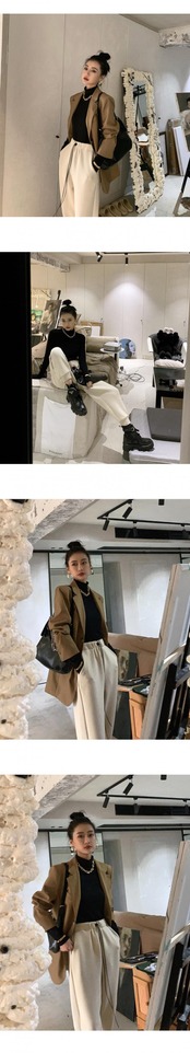 色:黒底シャツ,黒いズボン,アプリコットパンツ