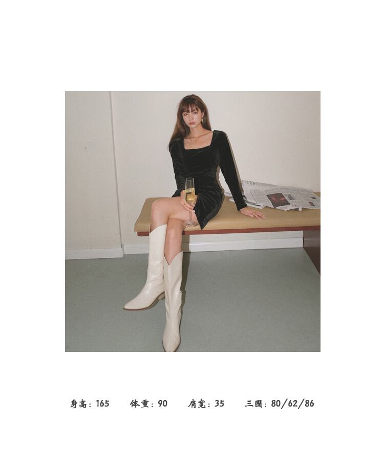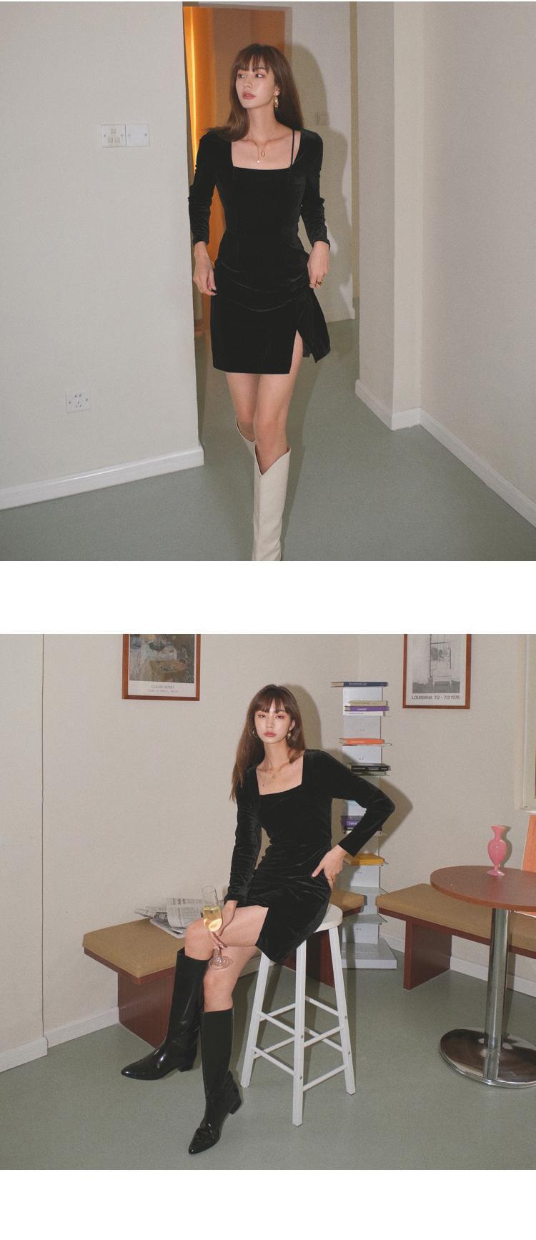 秋物ウェスト厚みブラックワンピースレディースハイウェスト長袖スリーブAラインショートスカート ロング オータム スクウェア ウエスト GroundMODE475419640651 | pleglad Ground