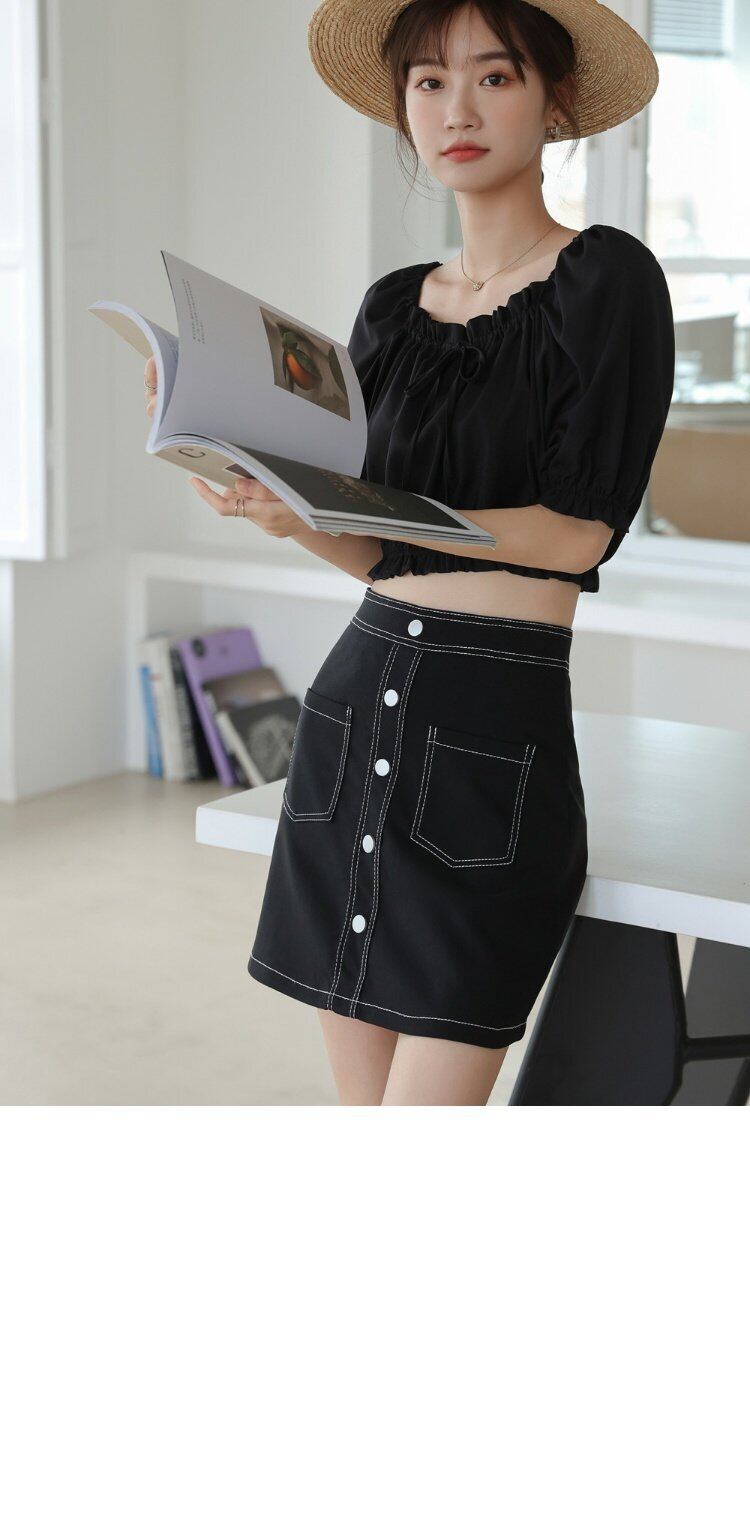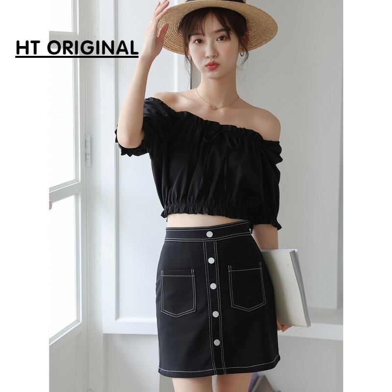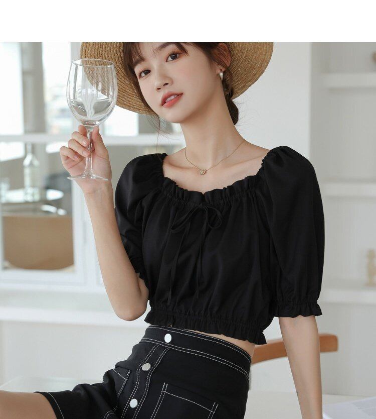 韓国ファッションショートトップス ストレッチウェスト半袖スリーブレディース夏服 ハーフスリーブ エラスティック 伸縮 夏物 スタイル ウエスト GroundMODE434031197049 | pleglad Ground