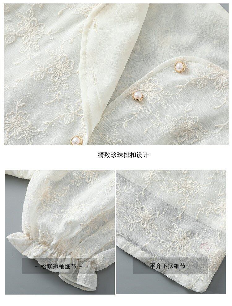 夏服Flowerデザイン シフォンシャツ 薄手半袖スリーブカラー ショート レッド ハーフスリーブ 刺繍 大人ガーリー スウィート キュート カジュアル 夏物 フラワーデザイン スクウェア GroundMODE477483867139 | pleglad Ground