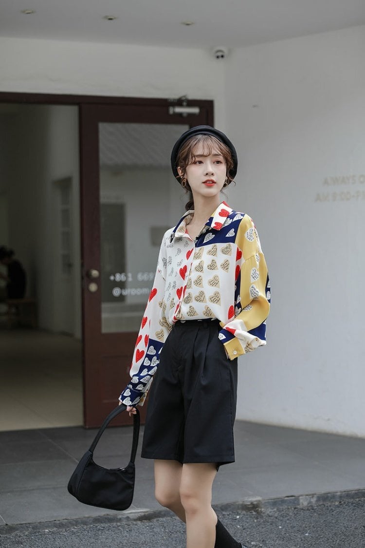 Flowerデザイン シャツ レディースカラープリントカジュアルスプリングスタイル ロング 春物 フラワーデザイン ステッチ 長袖 GroundMODE450617640378 | pleglad Ground