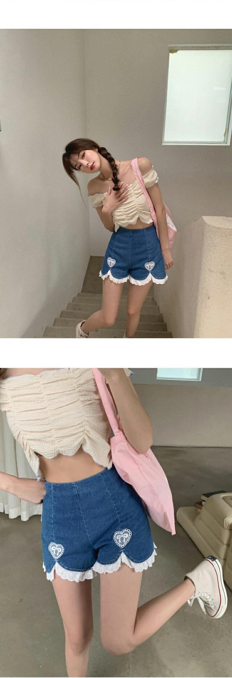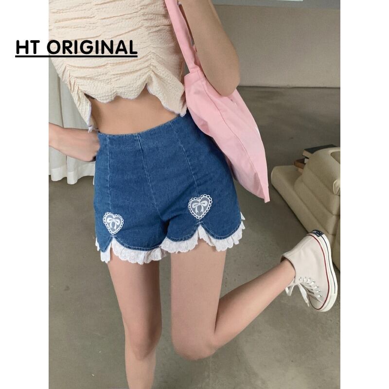 レースサイドブルーショーツ レディース夏服ハイウェストウェスト薄手Aラインワイドレッグパンツ 夏物 ワイドパンツ ウエスト GroundMODE497869673230 | pleglad Ground