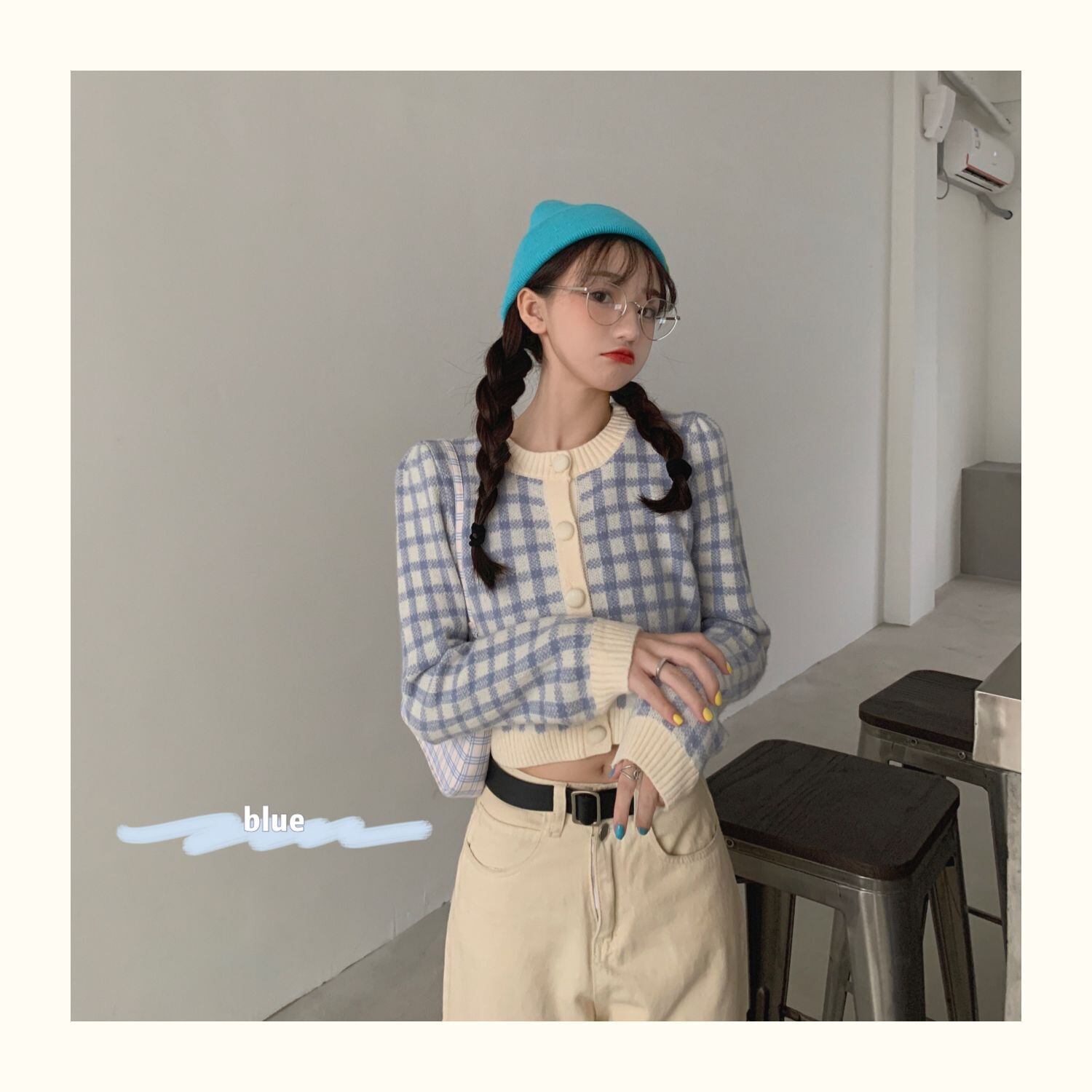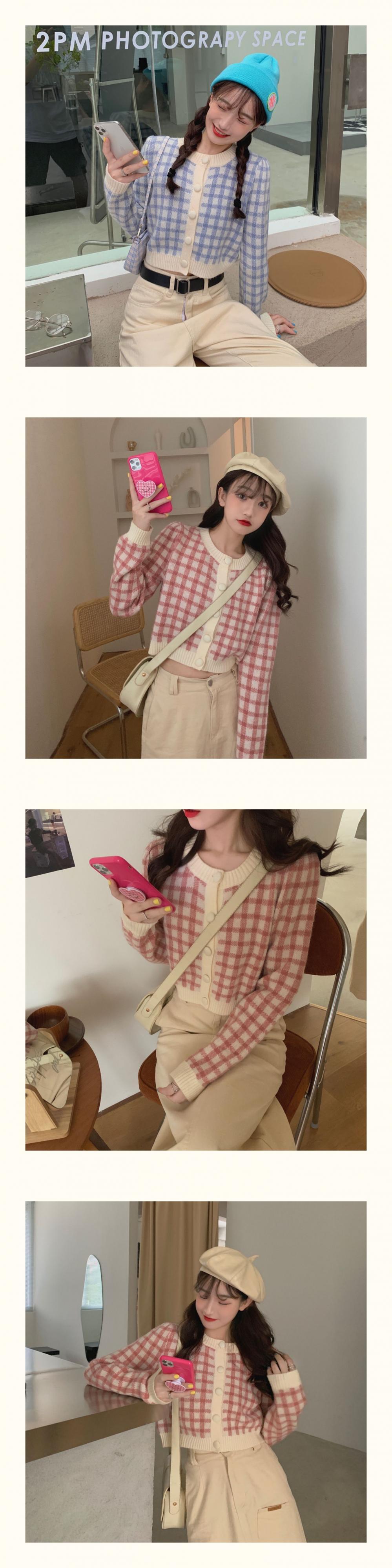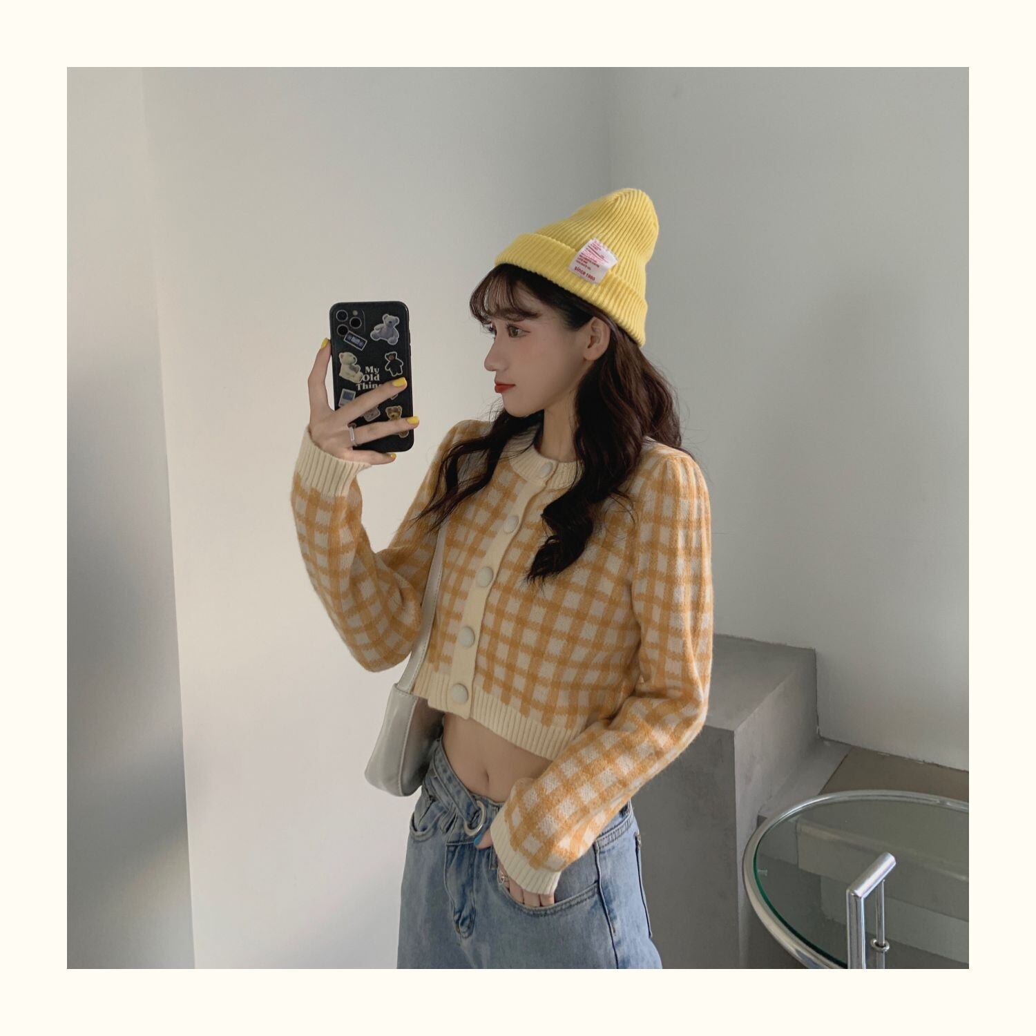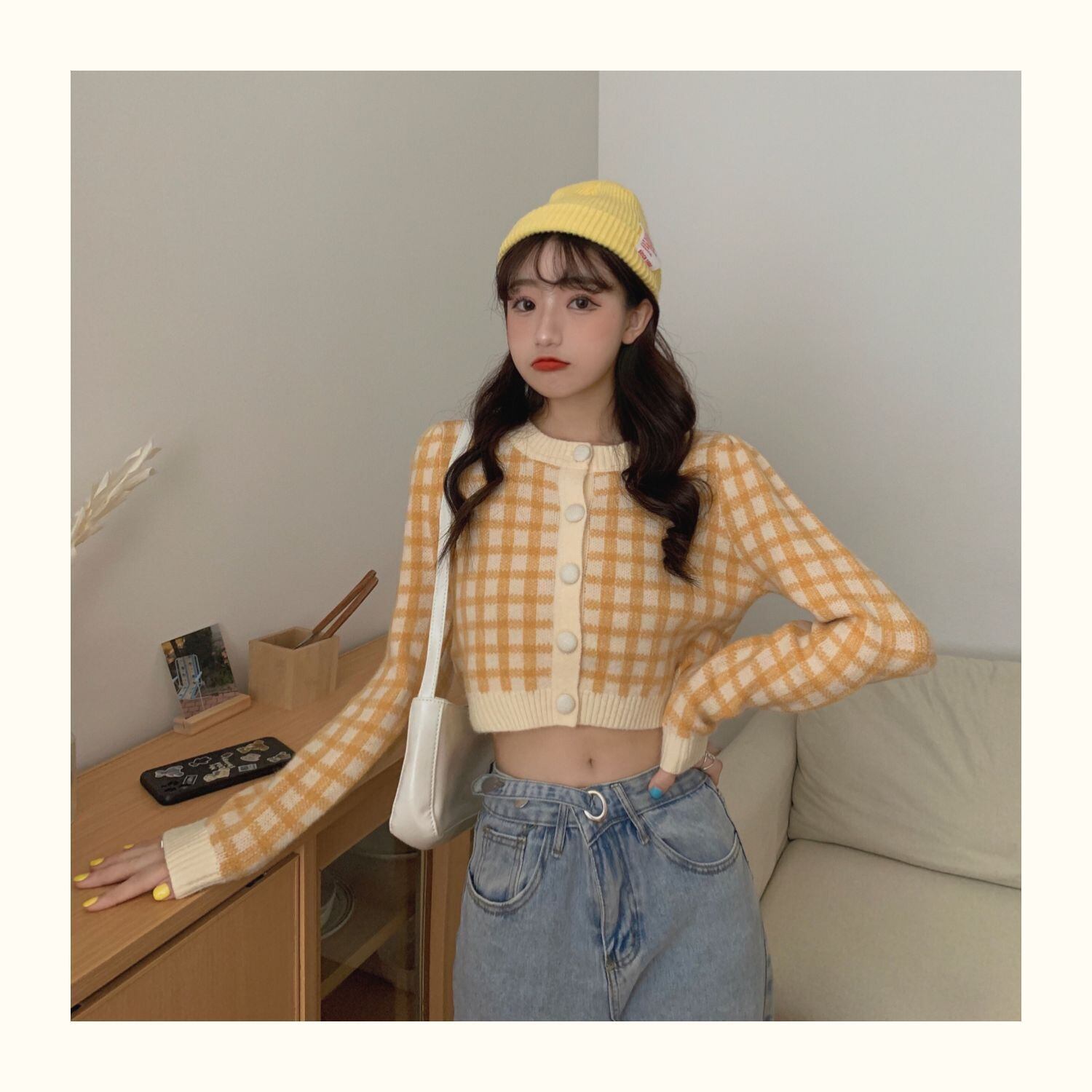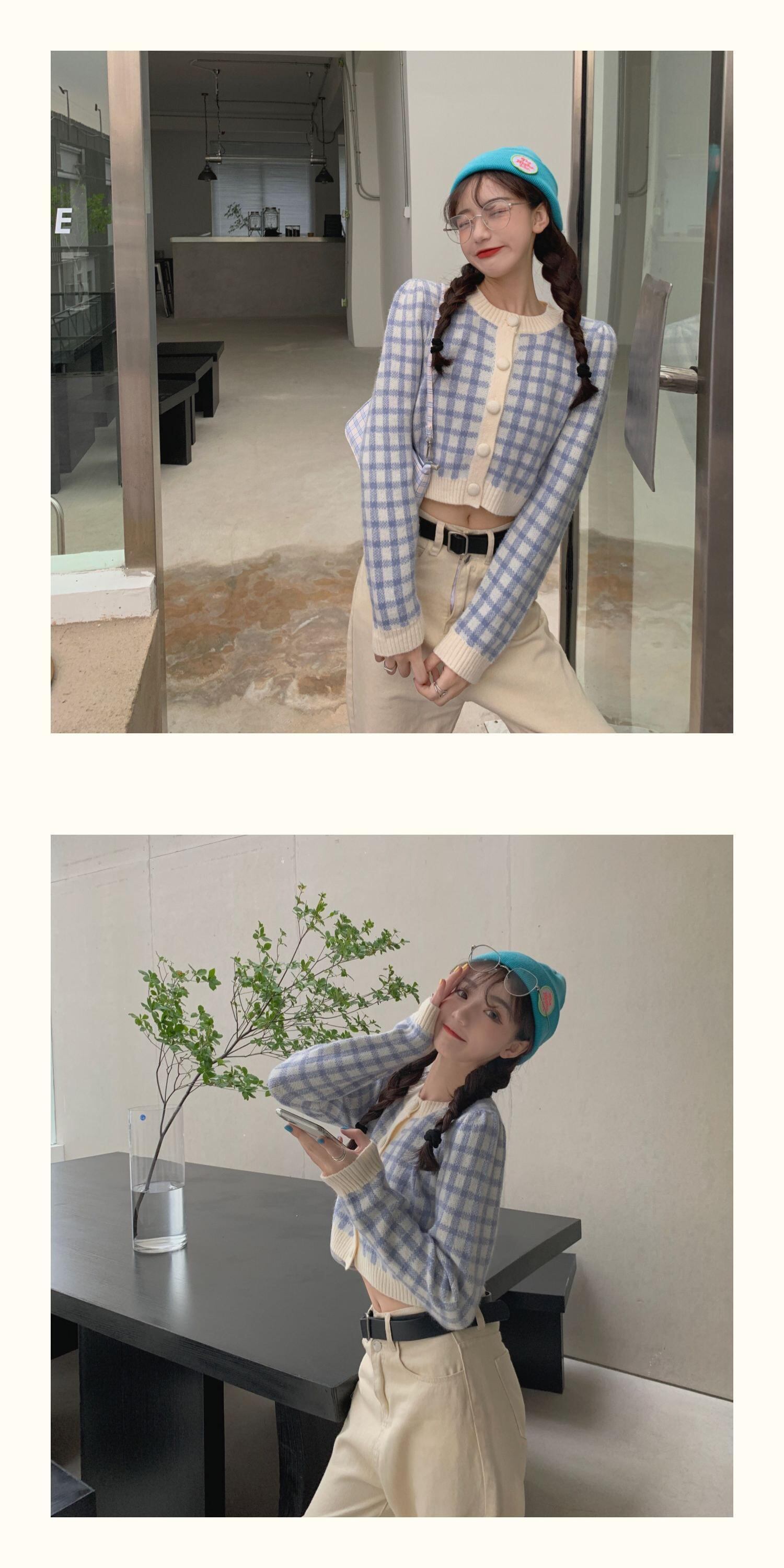 ラウンドネック格子柄セーター ジャケット レディース秋物ウィンターニットカーディガンショートトップス ロング オータム 冬物 Oネック 長袖 GroundMODE413407816430 | pleglad Ground