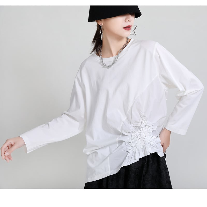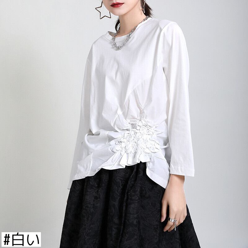 スプリングTシャツ長袖スリーブホワイトプルオーバー ルーズ薄手ラウンドネックレディース ロング コットン 春物 Oネック GroundMODE350156179851 | pleglad Ground