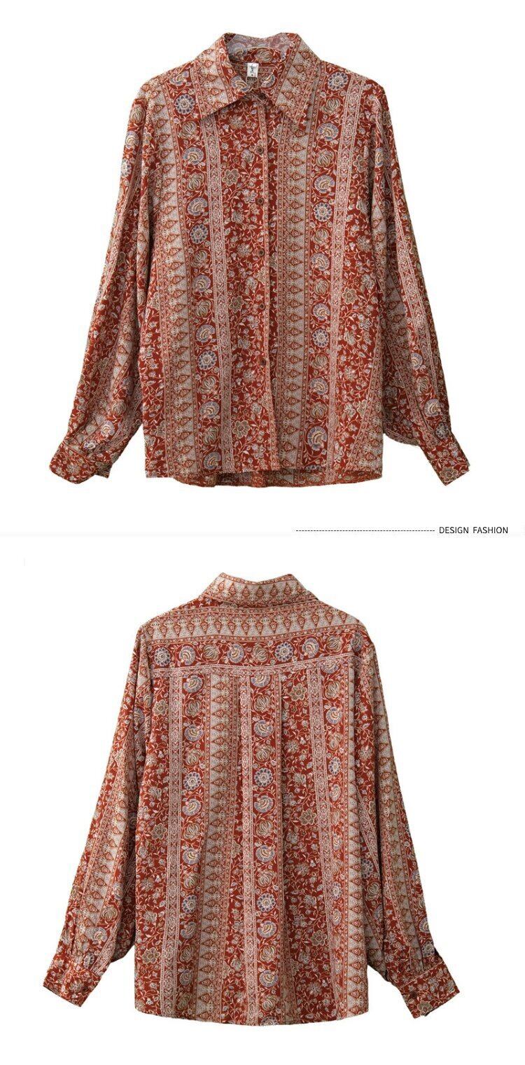 Flowerデザイン スリーブシャツ レディーススタンダードプリントトップス スプリング秋物 ランタンスリーブ レトロ 春物 オータム フラワーデザイン GroundMODE419708614944 | pleglad Ground