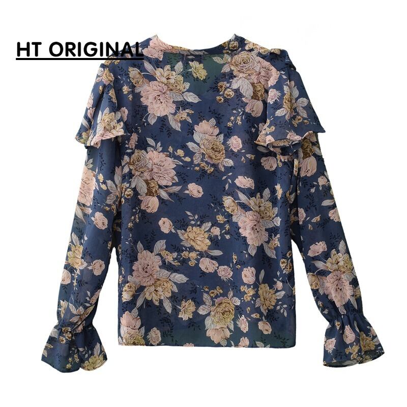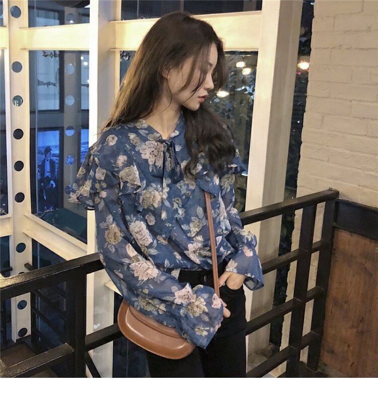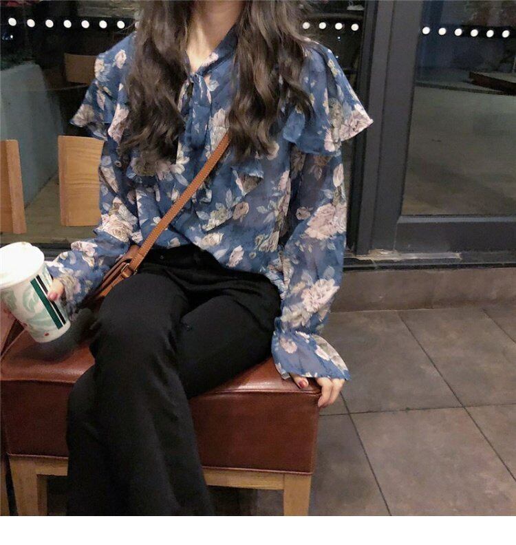 Flowerデザイン 韓国ファッションホワイト薄手ブルーシフォンシャツ ブラウス レディース 大人ガーリー スウィート キュート カジュアル フラワーデザイン GroundMODE490725428659 | pleglad Ground