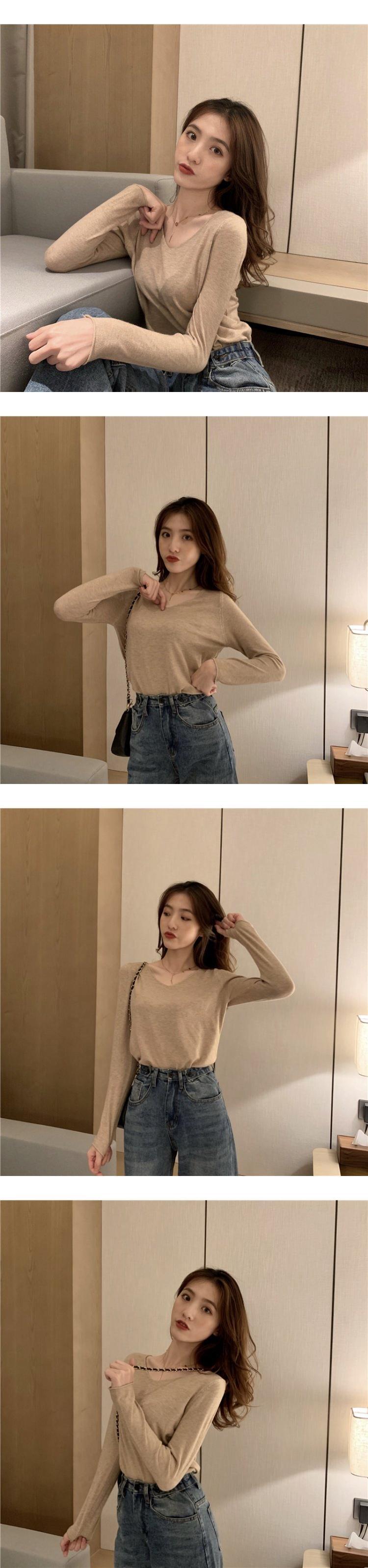 韓国ファッション秋物ソリッド カラールーズVネックカジュアルゆったりレディースTシャツトップス オータム ソリッドカラー スタイル GroundMODE478181824220 | pleglad Ground