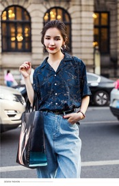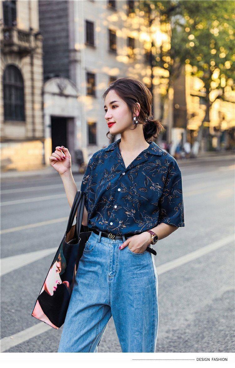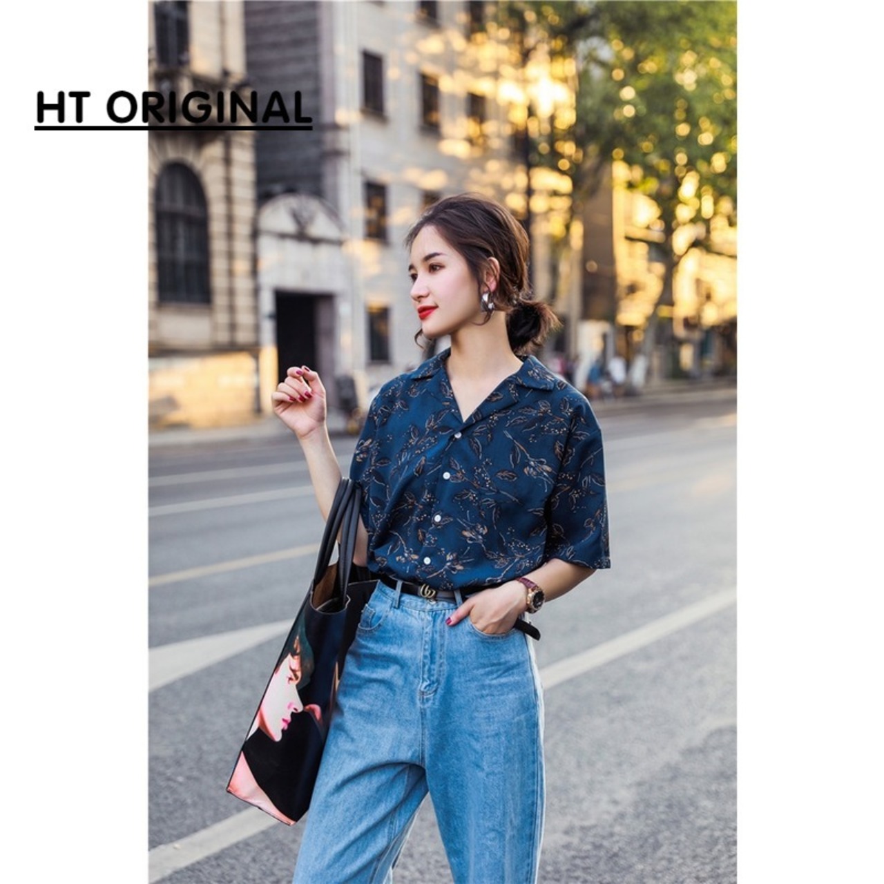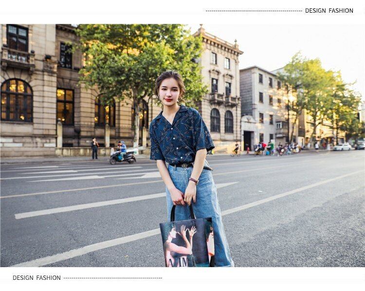 Flowerデザイン スタンダードブルーヴィンテージシャツ プリント柄ルーズレディース レトロ フラワーデザイン ビンテージ GroundMODE41159039147 | pleglad Ground