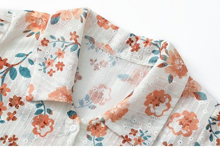 スリーブフローラルシャツ 半袖レディーススタイル刺繍プリントスタンダードシフォン夏服トップス ショート レトロ ハーフスリーブ 夏物 花柄 GroundMODE431397324099 | pleglad Ground
