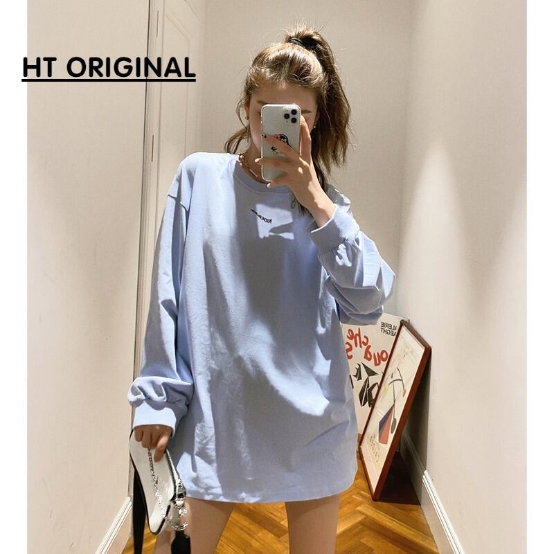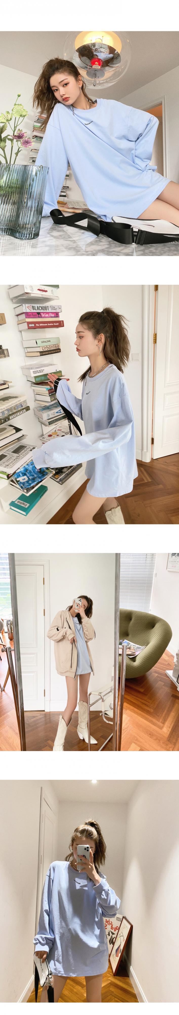 Tシャツレディースルーズスプリング秋物刺繍ラウンドネックホワイトゆったりセーター ロング コットン 春物 オータム Oネック ピュア 長袖 ミドル丈 GroundMODE493266056496 | pleglad Ground