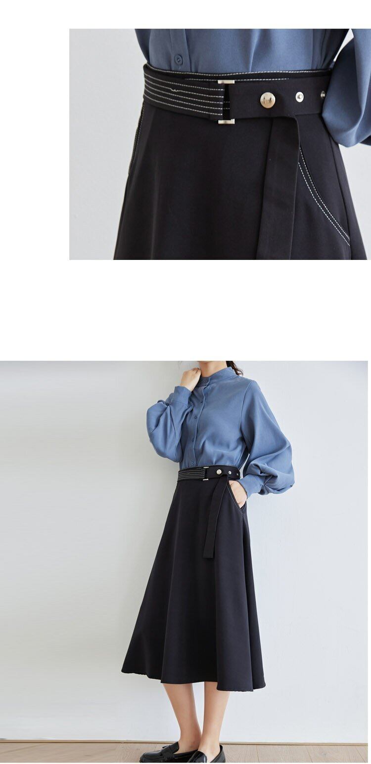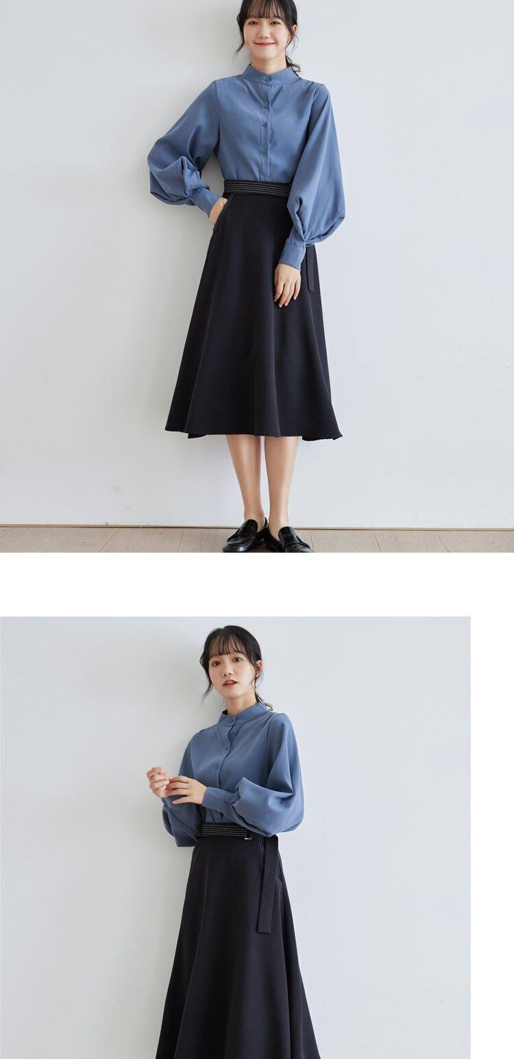 スプリングスタンダードスタンドカラーカラースリーブブルー長袖シャツ スカート セット ロング ランタンスリーブ レトロ 春物 GroundMODE423139510342 | pleglad Ground