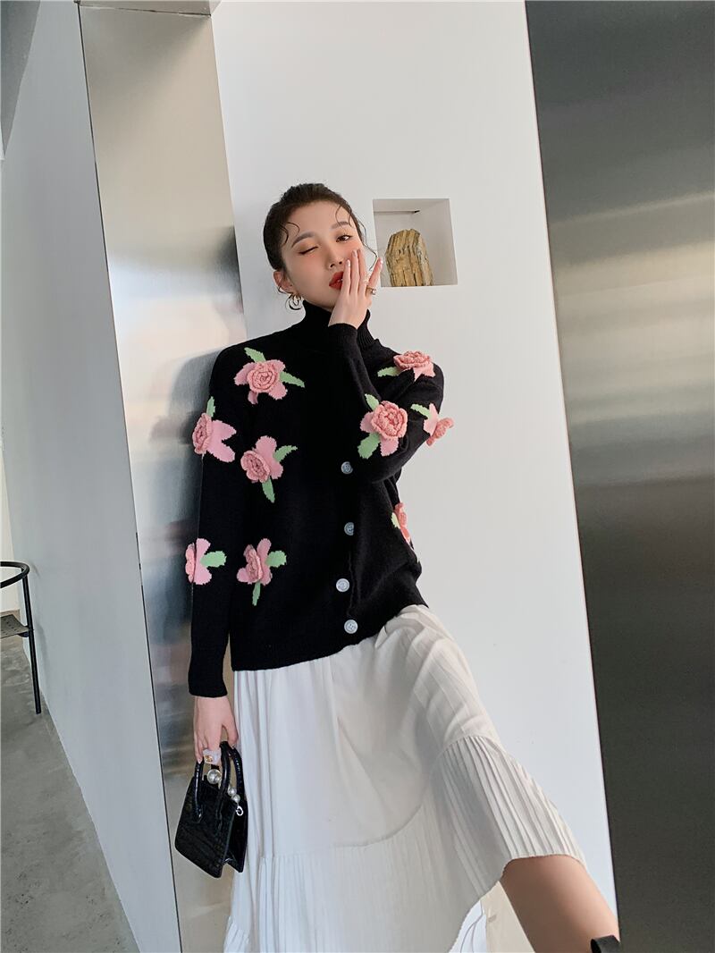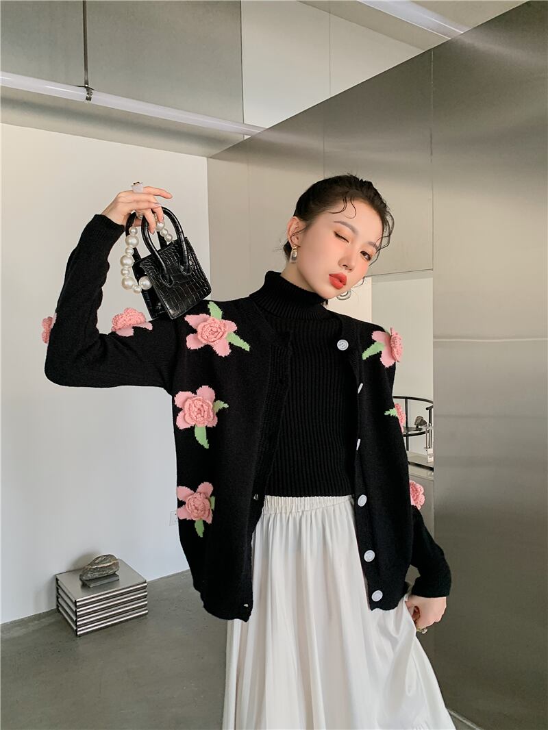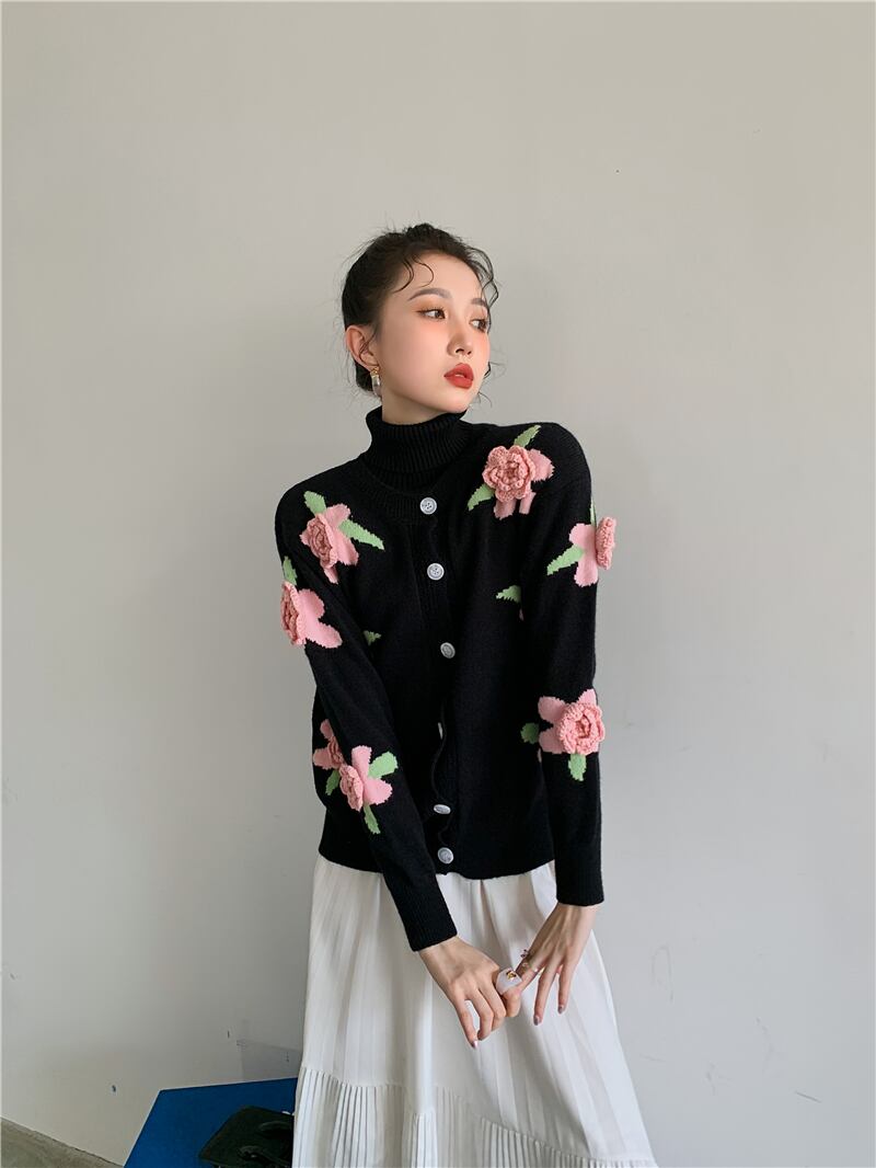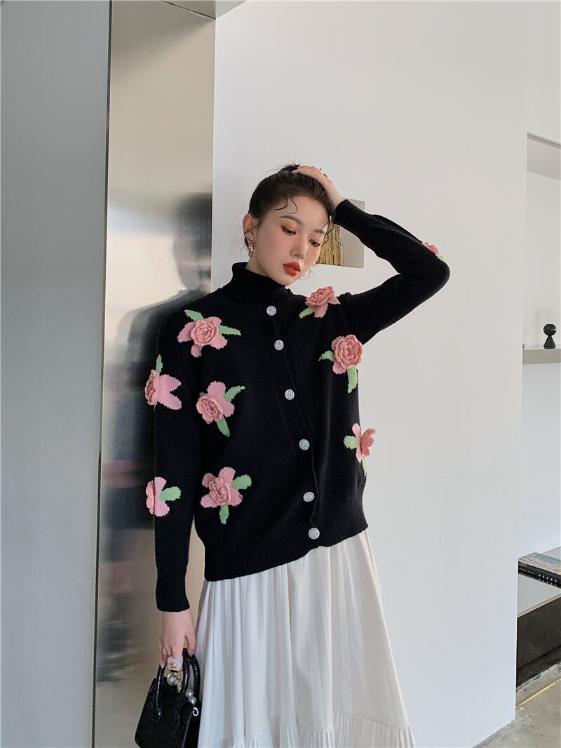 Flowerデザイン ニットカーディガンレディース秋物ウィンタールーズセーター コート ラウンドネックトップス オータム 冬物 Oネック フラワーデザイン GroundMODE246504034318 | pleglad Ground