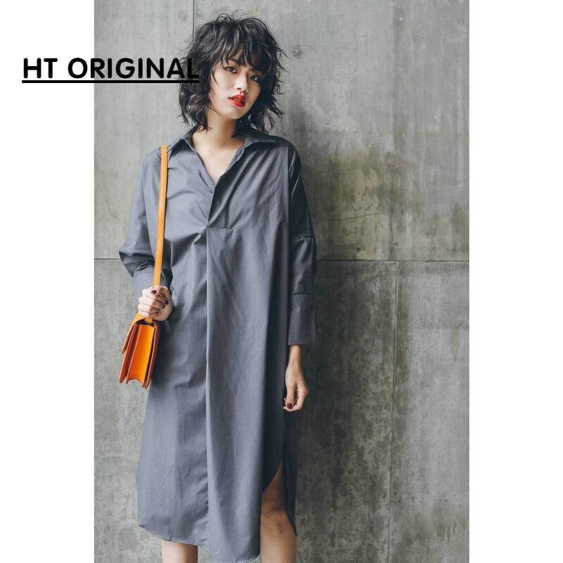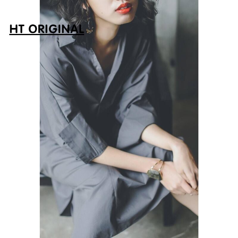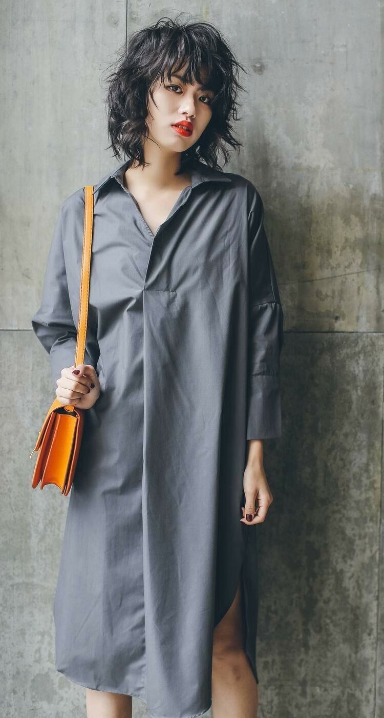 スプリング秋物スタイルVネックオーバーサイズルーズシャツ スカート レディース ロング 春物 オータム ヨーロピアン 長袖 GroundMODE443130268488 | pleglad Ground