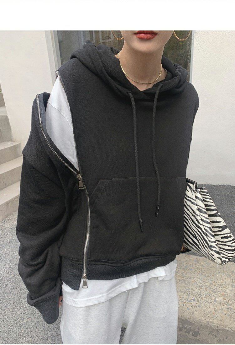 秋物ウィンターフードセーター レディースルーズ韓国ファッションスタイルコート ストラップレスジッパートップス スプリング 春物 オータム 冬物 GroundMODE486609336325 | pleglad Ground