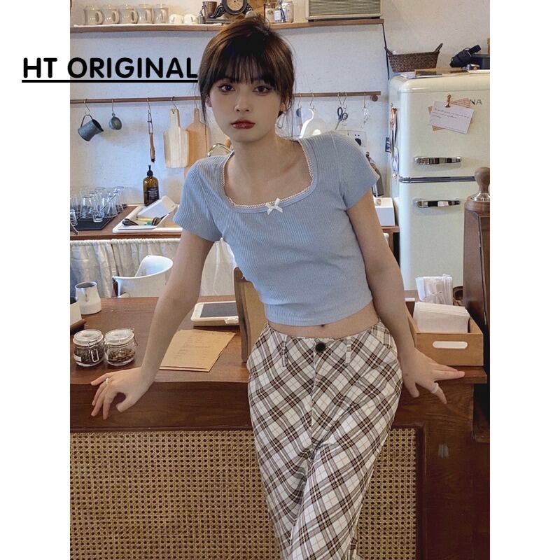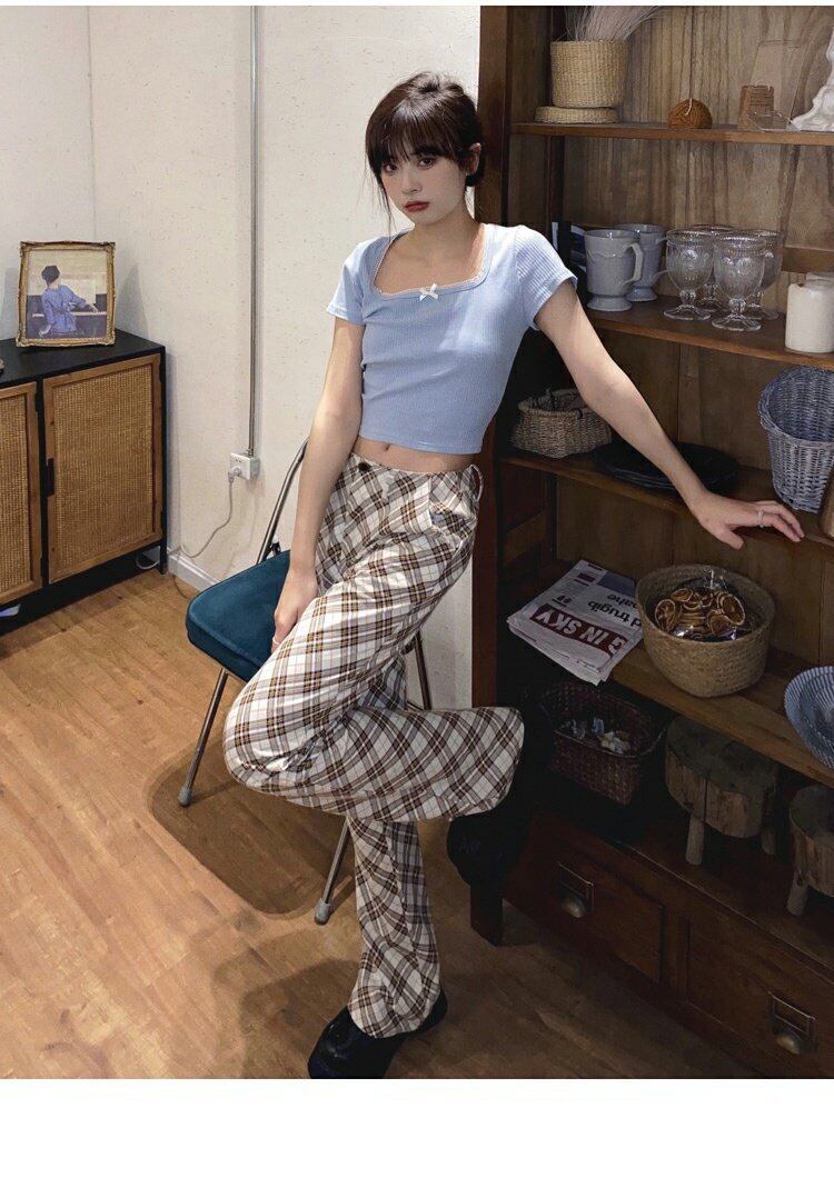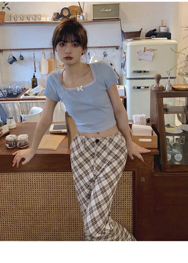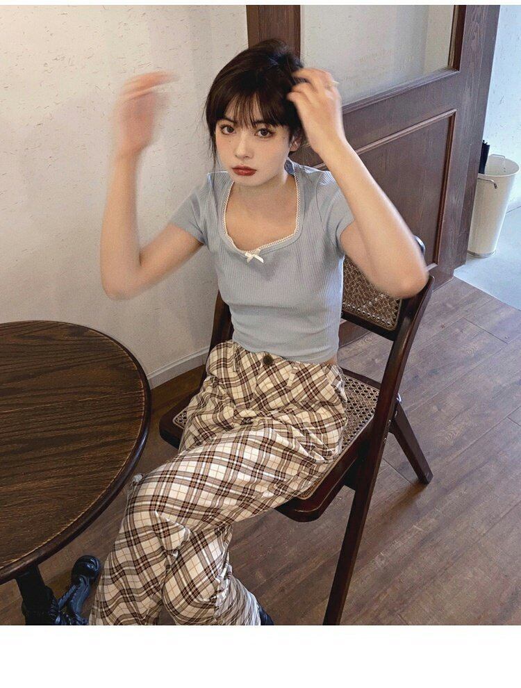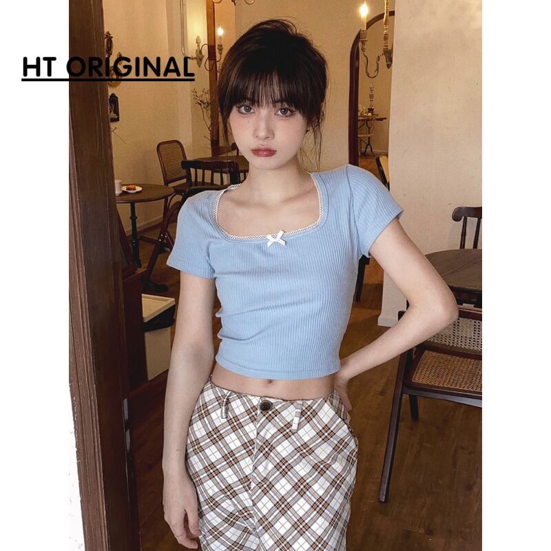 夏服カラーリボンショートTシャツスタンダードトップス レトロ 大人ガーリー スウィート キュート カジュアル 夏物 ピュア スクウェア GroundMODE434724480832 | pleglad Ground