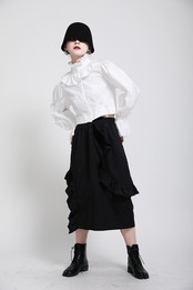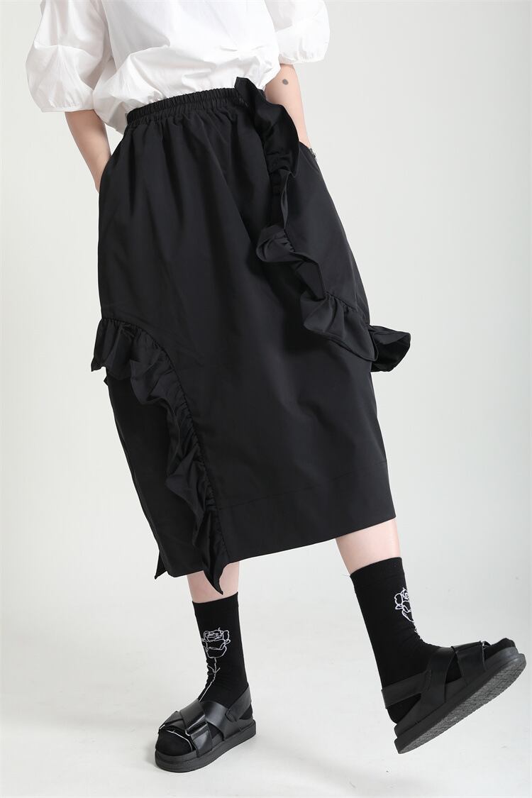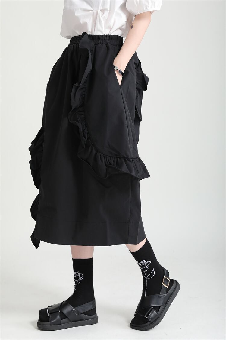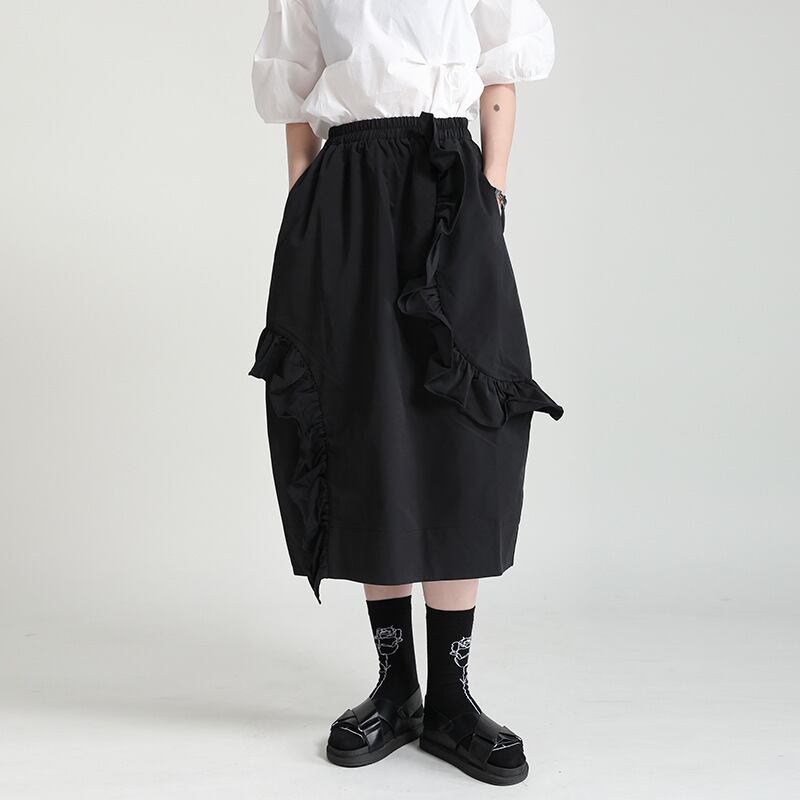 秋物Flowerデザイン アシンメトリースカート ストレッチウェスト エラスティック 伸縮 オータム フラワーデザイン ウエスト GroundMODE352578736551 | pleglad Ground