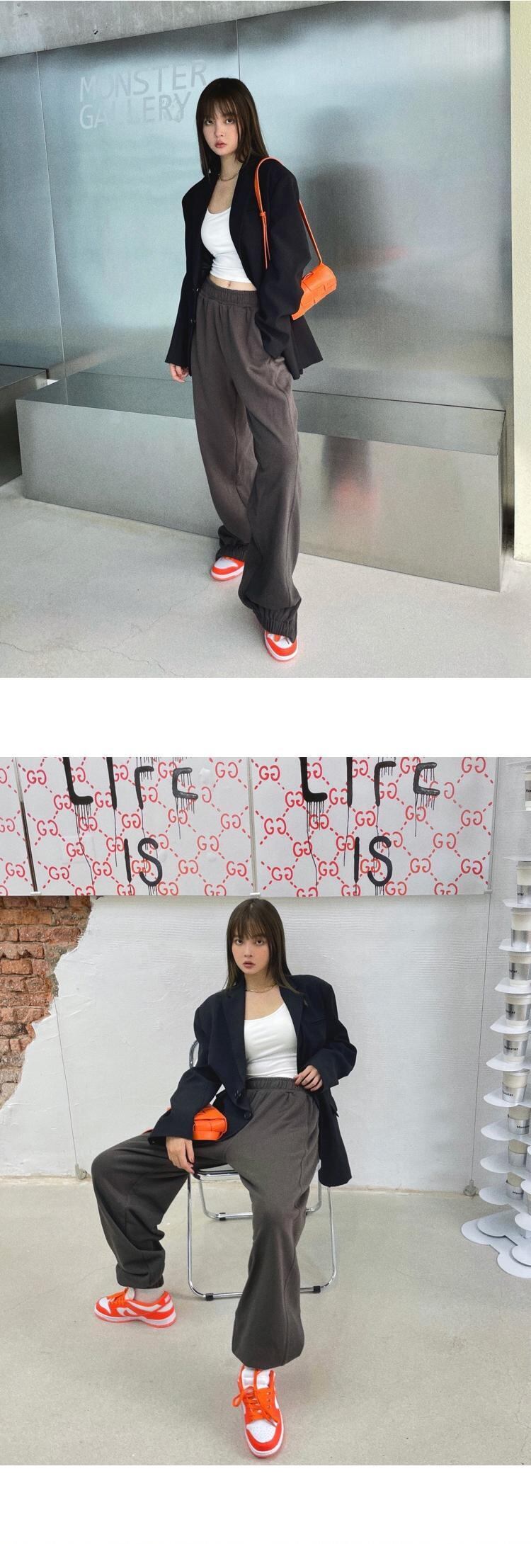 色:黒のスーツジャケットスポット,ダークコーヒーカラーパンツ在庫あり