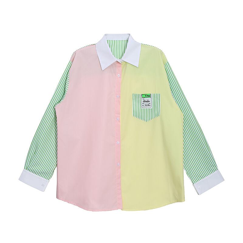 シャツ レディース秋物カラーブラウス ロング オータム ヨーロピアン ステッチ 長袖 GroundMODE35224317073