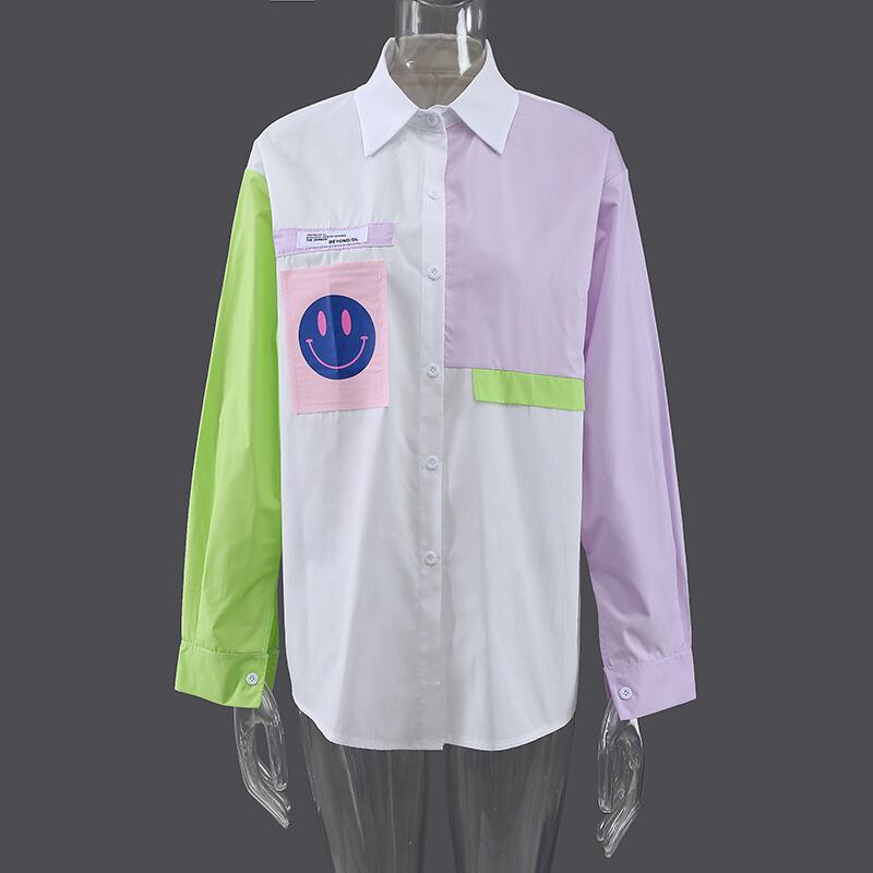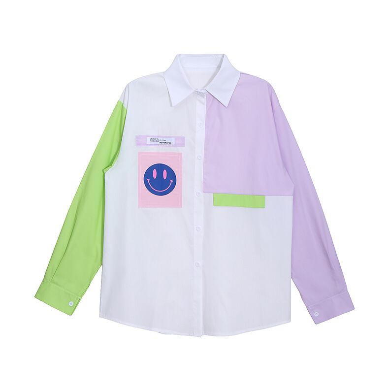 カラーブラウス スプリング秋物韓国ファッションルーズロング 長袖 春物 オータム ステッチ GroundMODE1756450929