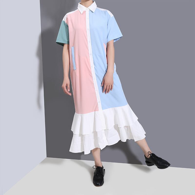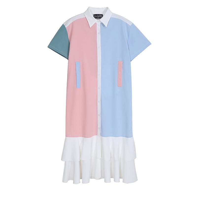 夏服スタイル韓国ファッションシャツ スカート カラーラッフルワンピース 夏物 ミドル丈 GroundMODE21549684772
