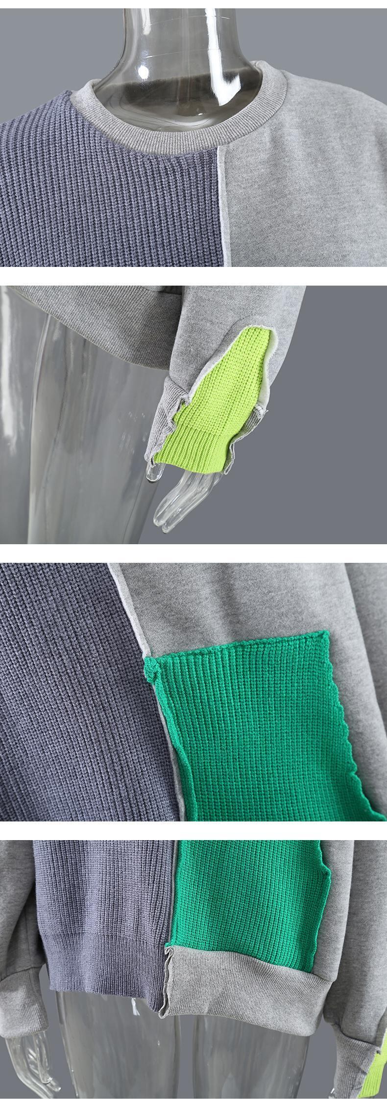 スプリング秋物ニットトップス ルーズセーター レディース ロング 春物 オータム ステッチ 長袖 GroundMODE92466360078