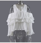 夏服ブラウス Vネックシャツ レディース ロング 夏物 オフショルダー 長袖 GroundMODE34063346124