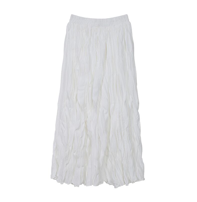 スプリング秋物スカート ウェスト薄手ホワイトプリーツ 春物 オータム ウエスト ミドル丈 GroundMODE46262313375
